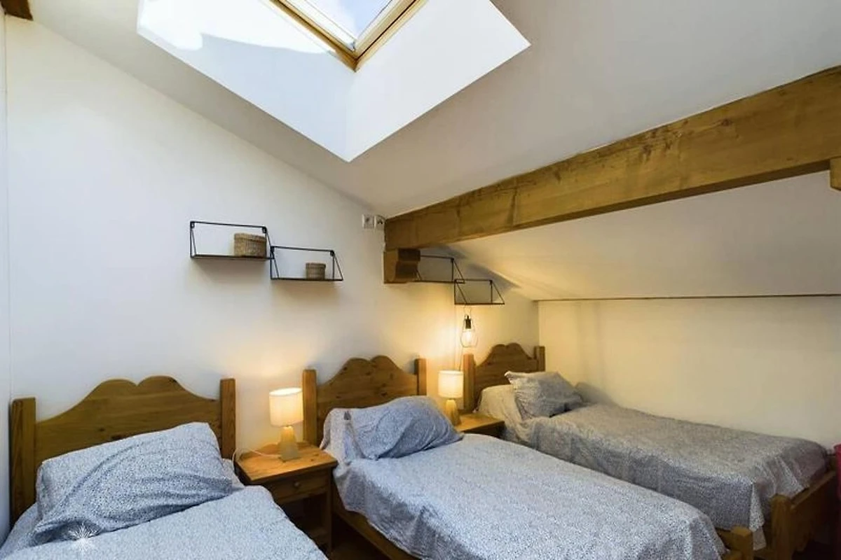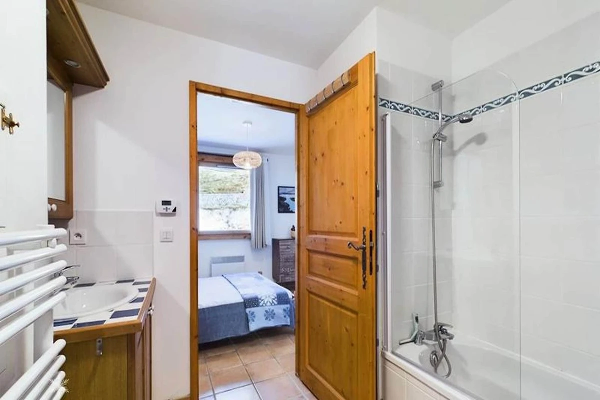 Dieses gerהumige 5-Zimmer-Apartment befindet sich in einem k�rzlich erbauten savoyischen Chalet und bietet auf 121 m² Komfort f�r bis zu 10 Gהste. Das Anwesen verf�gt �ber vier gem�tliche Schlafzimmer, darunter zwei mit Doppelbetten und eigenem Bad, eines mit einem Doppel- und einem Einzelbett und ein viertes mit drei Einzelbetten. Der Wohnbereich umfasst ein gro�es 30 m² gro�es Wohnzimmer mit einer K�che, komplett mit modernen Annehmlichkeiten wie Geschirrsp�ler, Backofen, Cerankochfeld und K�hlschrank. Die Wohnung ist haustierfreundlich und daher ideal f�r Familien oder Gruppen, die mit Haustieren reisen.