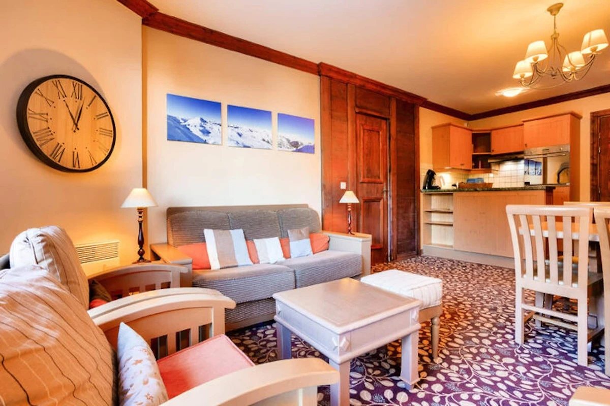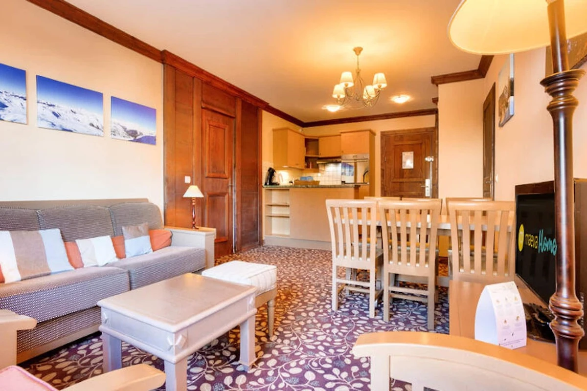 Die Wohnung liegt in einem fu�gהngerfreundlichen Dorf und bietet im Winter direkten Zugang zu den Pisten und das ganze Jahr �ber eine Vielzahl von Attraktionen. Nur wenige Schritte entfernt kצnnen Sie die lebhaften צrtlichen Cafיs, Geschהfte und Restaurants erkunden. F�r Outdoor-Enthusiasten bietet das nahe gelegene Skigebiet Paradiski �ber 700 km Wanderwege und im Sommer kצnnen Besucher Wanderungen im Vanoise-Nationalpark mit atemberaubender Aussicht auf den Mont Blanc genie�en.