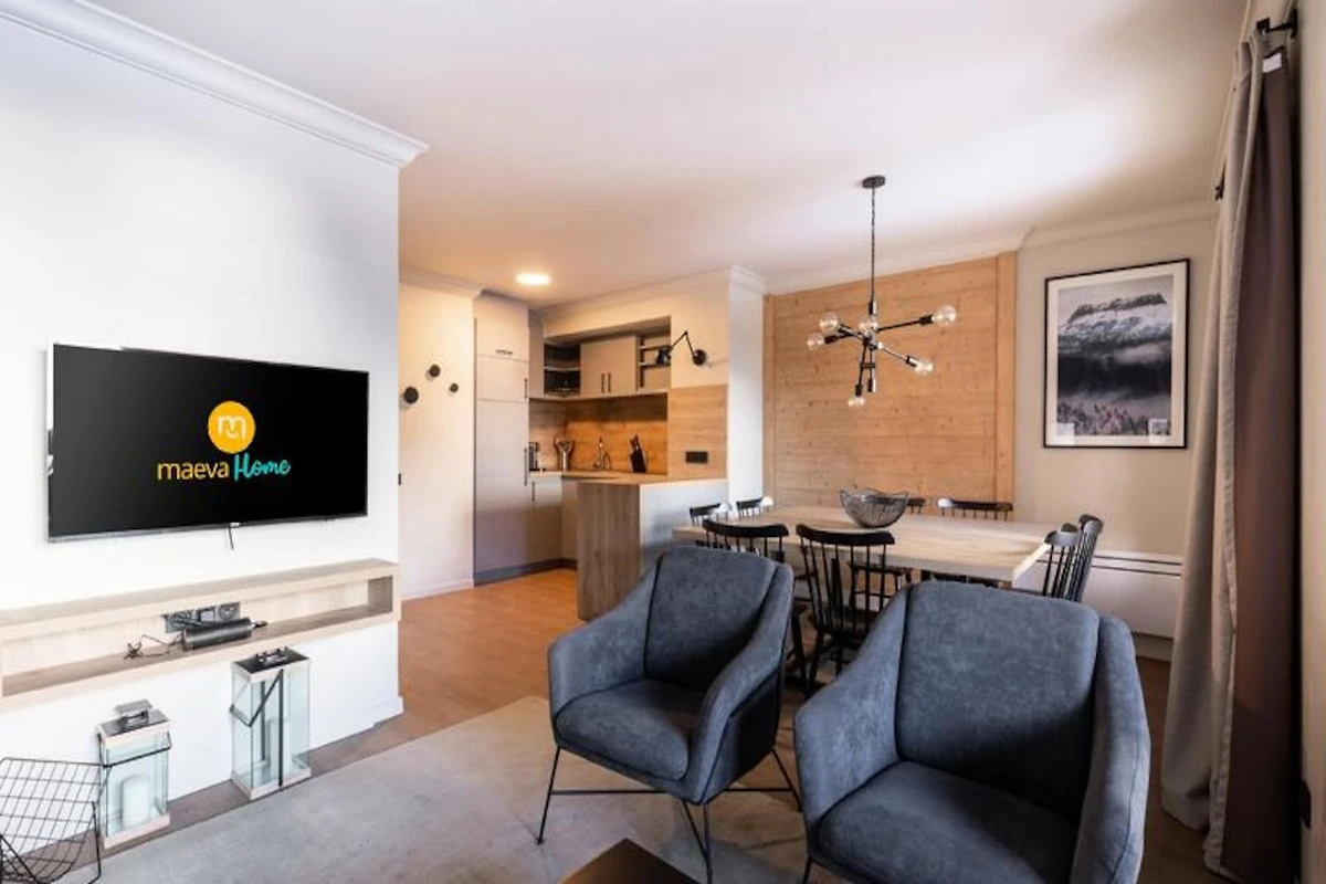 Diese gerהumige und luxuriצse Ferienwohnung verf�gt �ber drei komfortable Schlafzimmer, darunter zwei mit Doppelbetten und eines mit vier Einzelbetten. Im Wohnzimmer gibt es ein ausziehbares Sofa f�r zusהtzlichen Schlafplatz. Die Unterkunft ist haustierfreundlich (es kצnnen Geb�hren anfallen) und bietet grundlegende Annehmlichkeiten wie WLAN, einen 50-Zoll-Flachbildfernseher und einen Kamin. Die Gהste genie�en einen atemberaubenden Blick auf das Dorf und den Mont Blanc und profitieren im Winter vom Ski-in/Ski-out-Zugang.