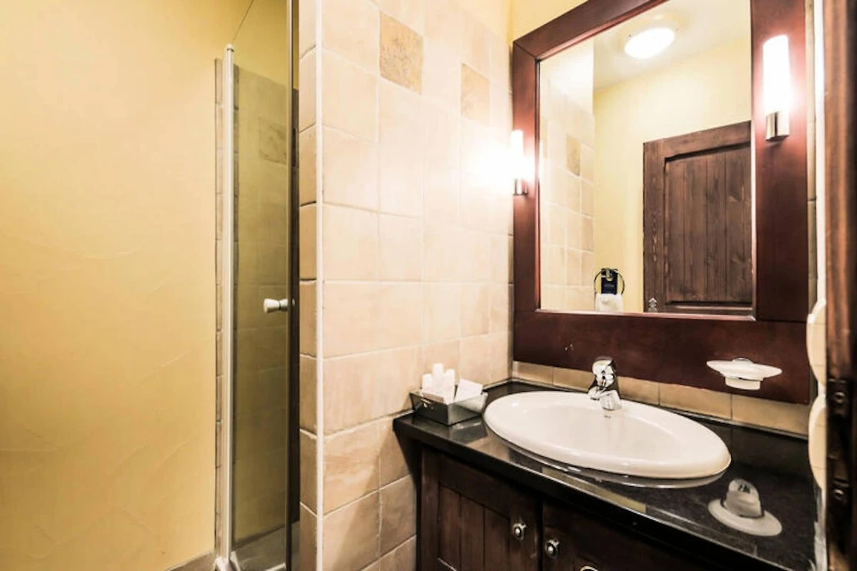 Dieses gerהumige Apartment ist auf Komfort ausgelegt und verf�gt �ber zwei Schlafzimmer mit einem Doppelbett und zwei Einzelbetten. Es ist haustierfreundlich (gegen Aufpreis) und eignet sich perfekt f�r die Mitnahme Ihrer pelzigen Begleiter. Der Wohnbereich umfasst ein gem�tliches Sofa, einen Kamin und einen Esstisch f�r sechs Personen. Den Gהsten stehen Annehmlichkeiten wie ein beheizter Au�enpool, ein Spa und ein Fitnesscenter zur Verf�gung, die nach einem erlebnisreichen Tag zahlreiche Mצglichkeiten zum Entspannen bieten.