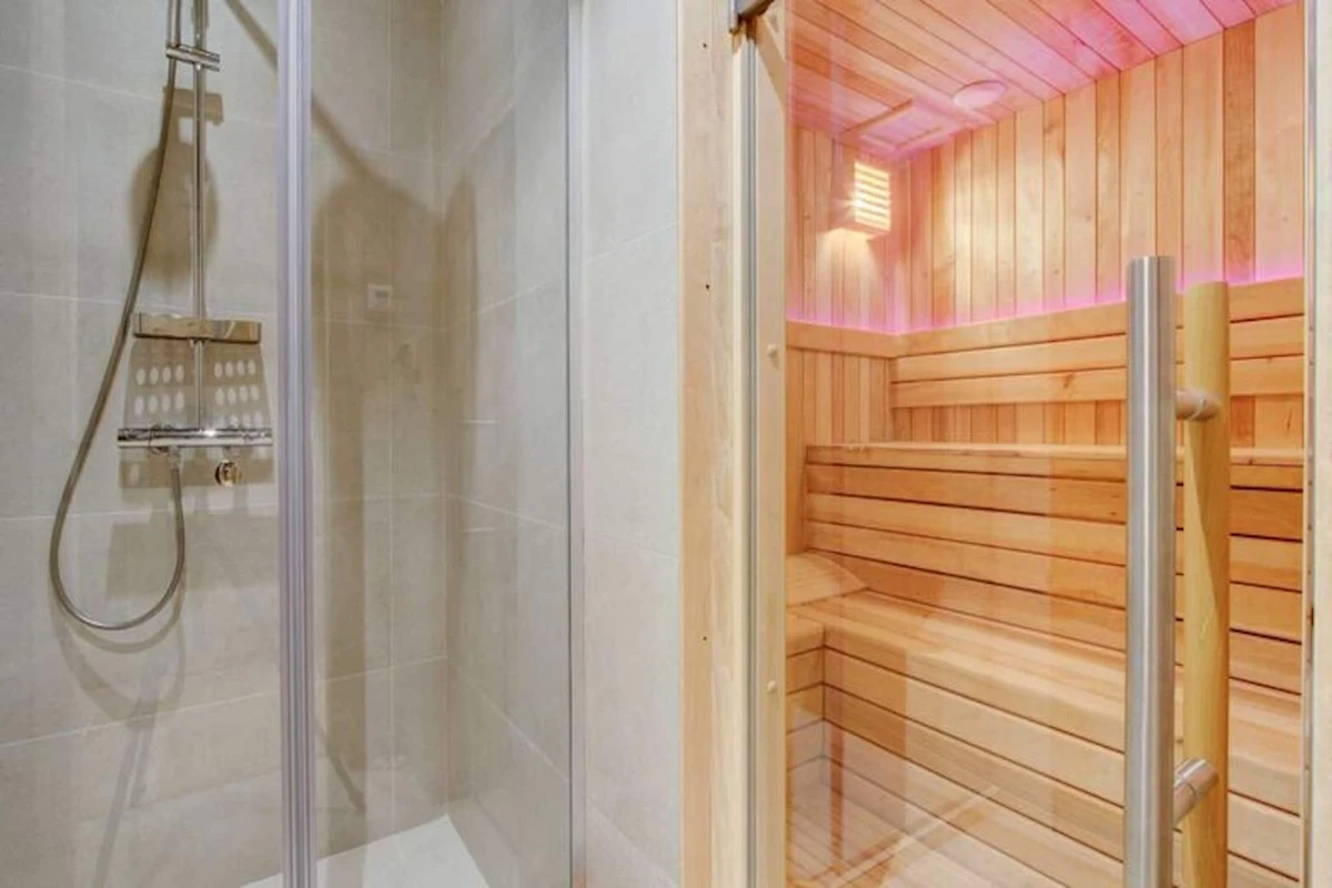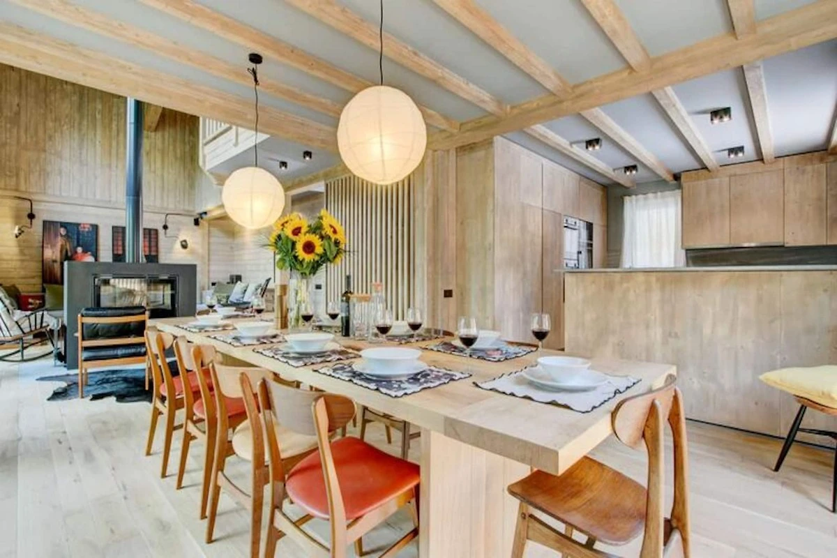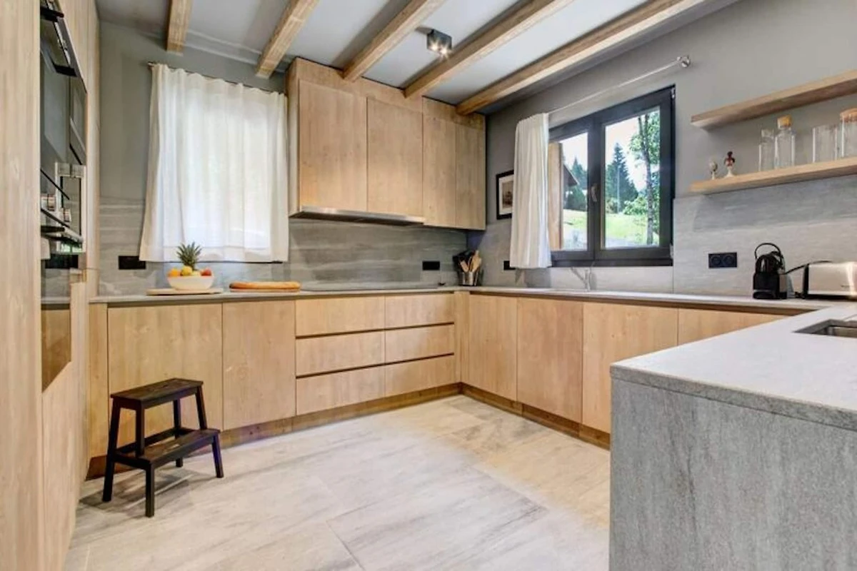 Die voll ausgestattete Küche verfügt über zwei Kühlschränke, Öfen, Induktionskochfelder und Geschirrspüler. Zu den weiteren Annehmlichkeiten gehören ein Weinkeller, ein Skiraum, Wäschemöglichkeiten und ein Holzofen im Wohnzimmer. Dieses Haus bietet eine Mischung aus praktischen und luxuriösen Annehmlichkeiten, um einen komfortablen Aufenthalt zu gewährleisten.