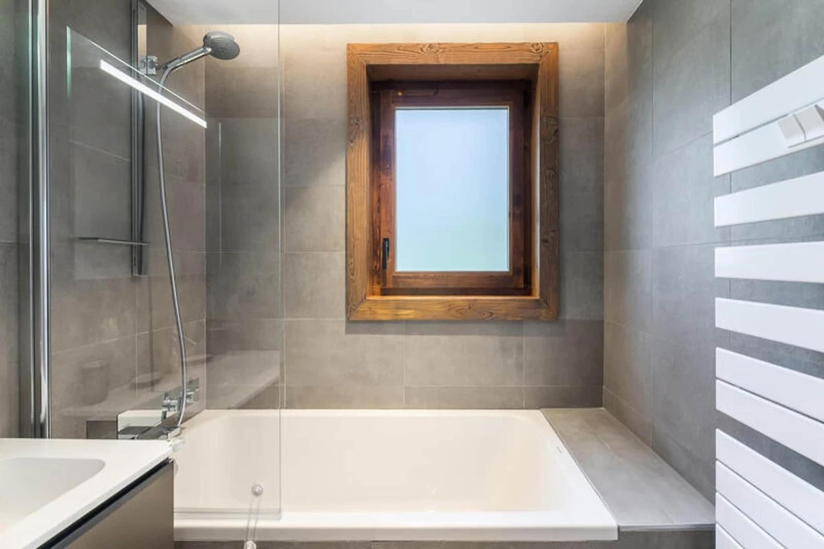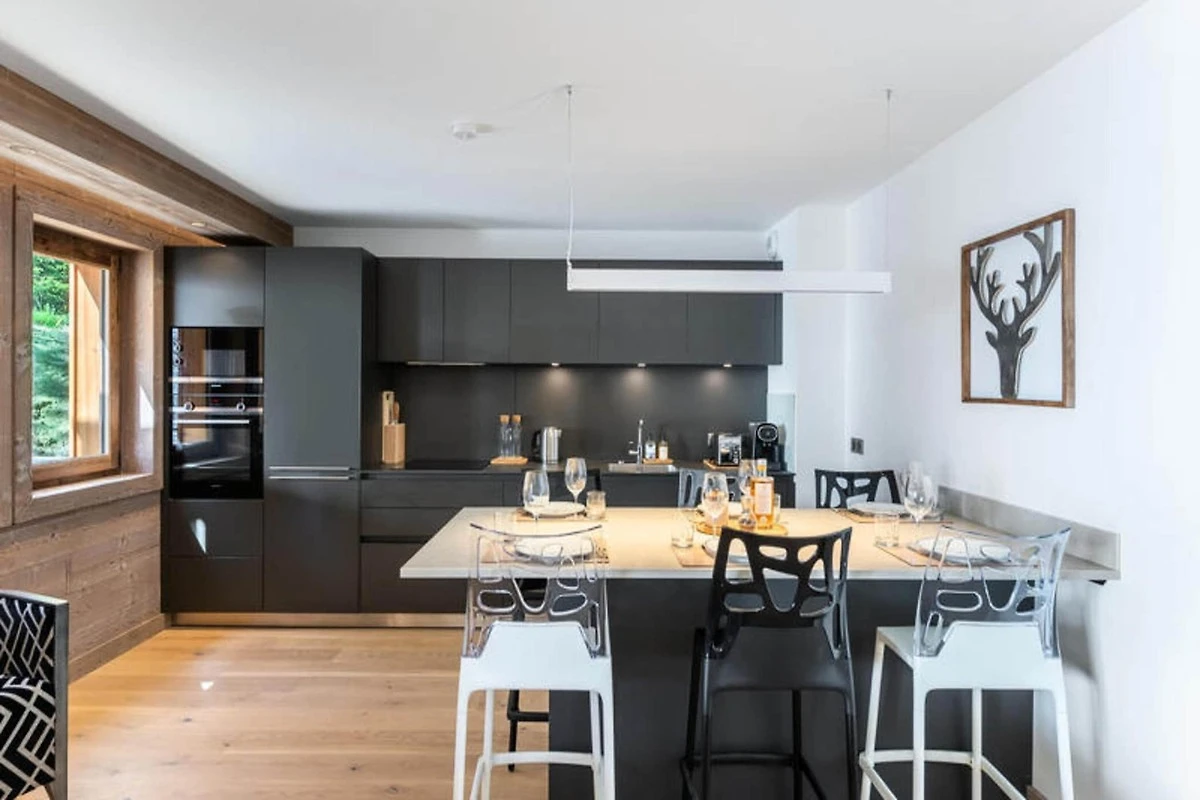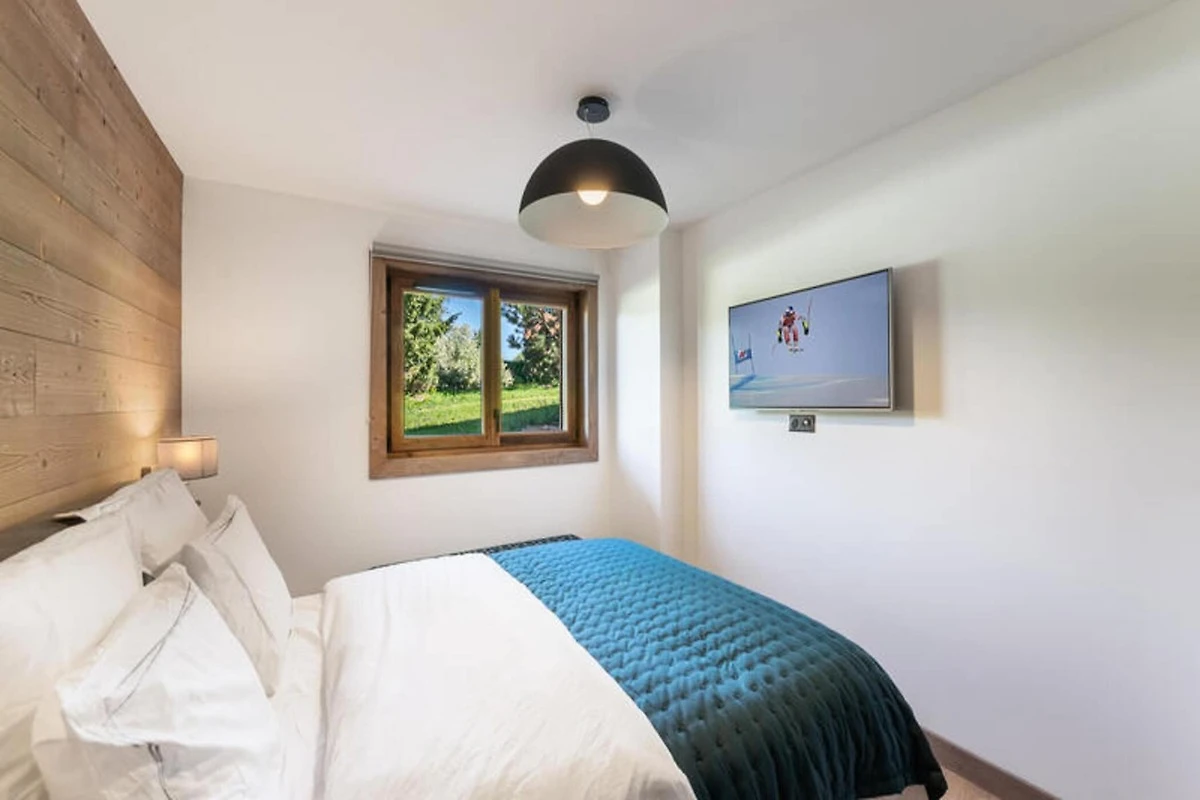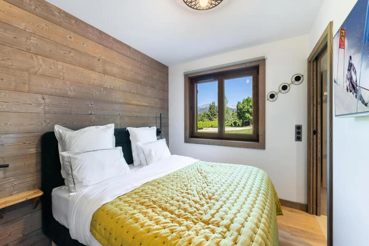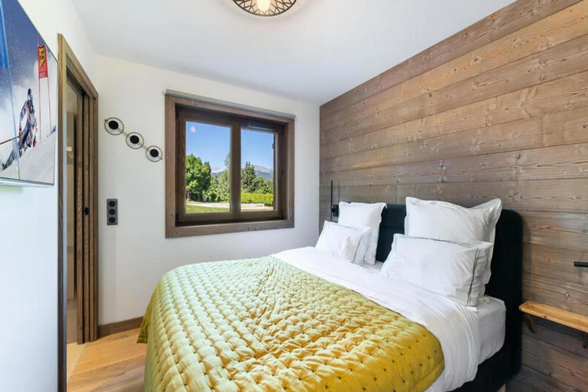 Das Anwesen bietet zusammen mit einem geräumigen und luxuriösen Design ein 78 m² großes Apartment, das sich perfekt für Familien oder Gruppen von bis zu 6 Personen eignet. Das Apartment befindet sich in einer neu erbauten Residenz oben auf dem Mont d'Arbois und besteht aus 2 Doppelzimmern, jeweils mit TV, Kleiderschrank und eigenem Bad, eines mit Duschbad und WC und das andere mit separatem Bad Dazu gehören eine Badewanne und ein Handtuchtrockner.