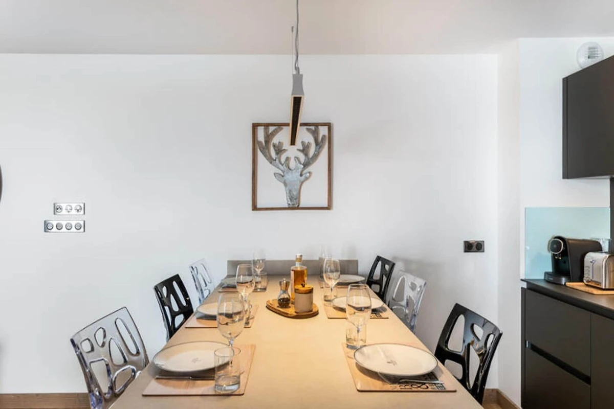 Die Residenz liegt ideal, nur wenige Gehminuten von den Skiliften entfernt und bietet direkten Zugang zu den Pisten. Die kostenlose MegBus-Shuttle-Haltestelle, die sich 50 Meter entfernt an der Haltestelle Le Gouna befindet, bietet eine bequeme Verbindung zum Zentrum des Dorfes und gewährleistet einen einfachen Zugang zu lokalen Annehmlichkeiten und Attraktionen. Egal, ob Sie das Skigebiet erkunden oder das charmante Dorfzentrum besuchen möchten, die Lage dieses Apartments bietet die perfekte Balance zwischen der Nähe zu Outdoor-Aktivitäten und der Bequemlichkeit der Transportmöglichkeiten.