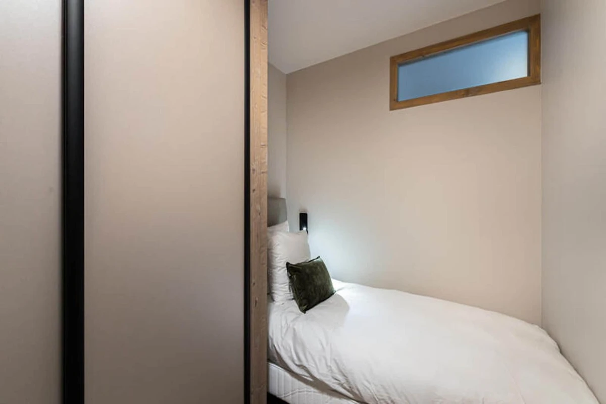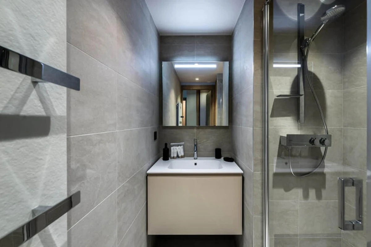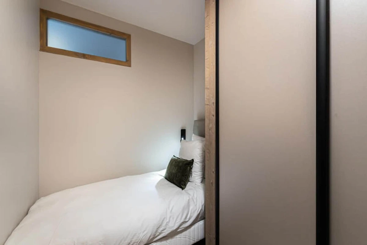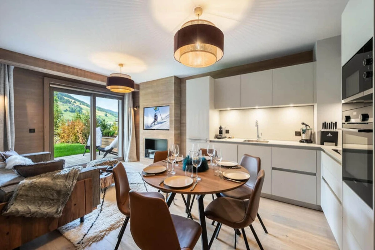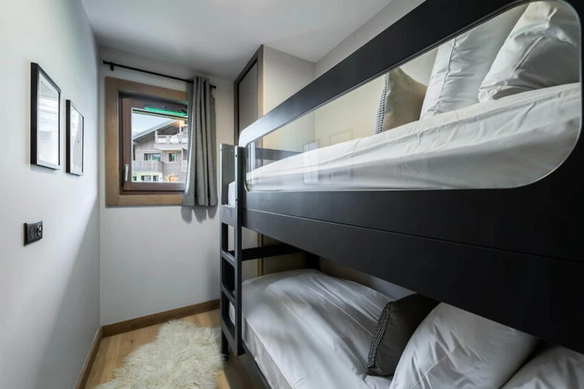 Dieses charmante, 66 m² große Apartment befindet sich im ruhigen Stadtteil Rochebrune in Megève, nur eine kurze 10-minütige Fahrt vom pulsierenden Stadtzentrum entfernt. Das Apartment eignet sich perfekt für Familien oder kleine Gruppen von Freunden und bietet eine moderne und einladende Atmosphäre. Es verfügt über ein geräumiges Wohnzimmer mit einem Ethanol-Kamin und einem Essbereich, der auf eine Terrasse mit herrlichem Blick auf die umliegende Landschaft führt. Die Unterkunft umfasst ein Doppelzimmer mit eigenem Duschbad und WC, ein Kabinenschlafzimmer mit Etagenbetten und ein zweites Schlafzimmer mit zwei Einzelbetten. Ein Badezimmer und eine separate Toilette vervollständigen den Raum.