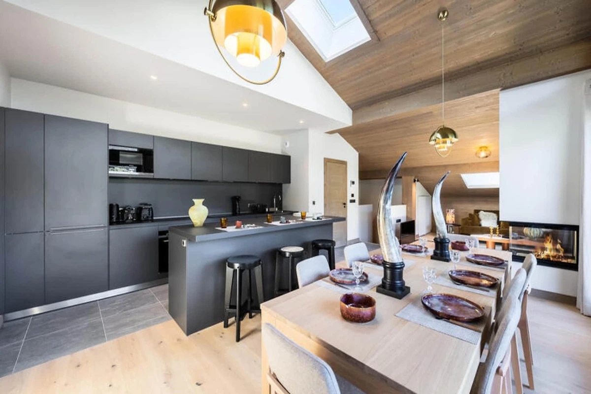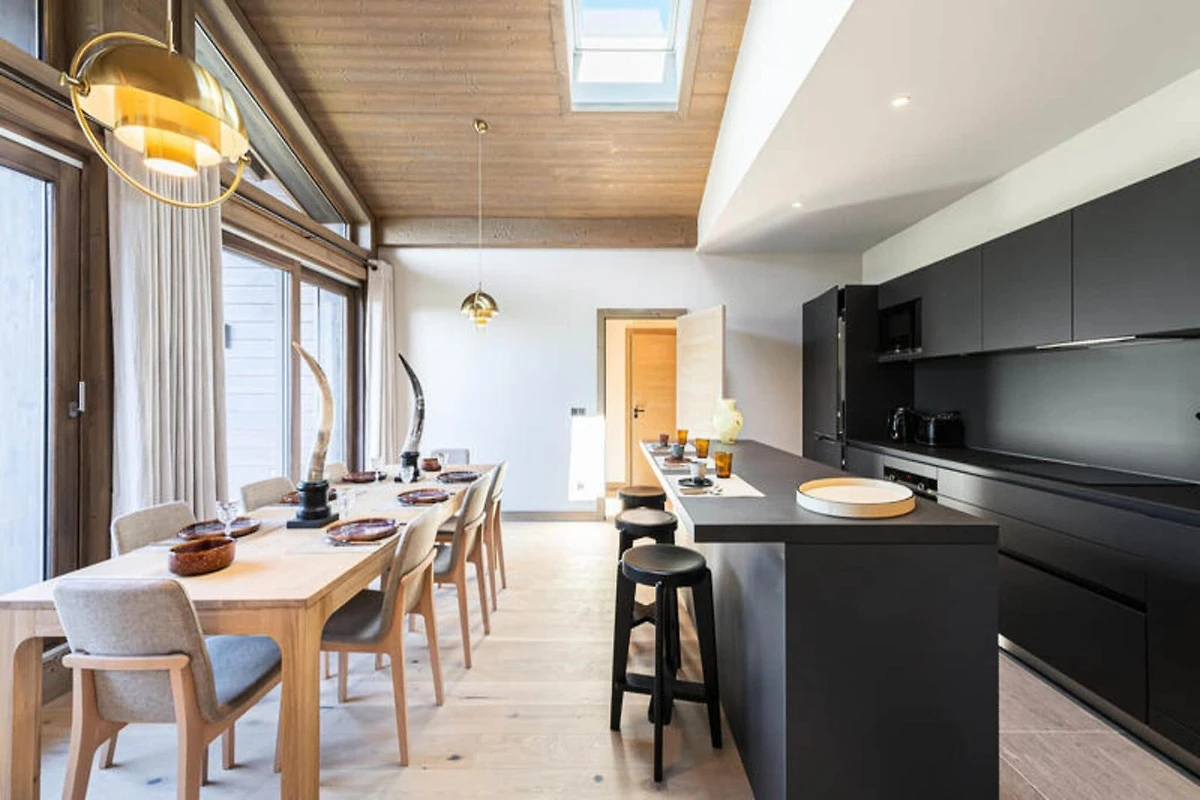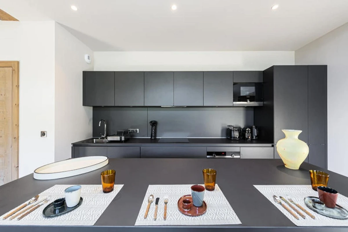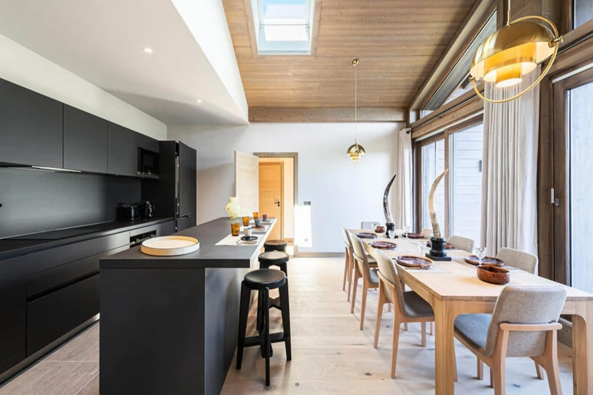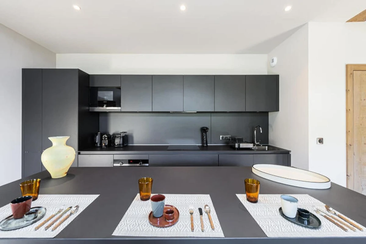 Das Anwesen ist komplett für einen komfortablen Aufenthalt ausgestattet und verfügt über eine moderne Küche, die über alle notwendigen Geräte zur Selbstversorgung verfügt. Der Innenraum besticht durch geschmackvolle Dekoration und ein gemütliches Ambiente mit viel Stauraum und einem Skiraum für Wintergäste. Überdachte Parkplätze stehen zur Verfügung und die Residenz wird von einem engagierten Team betreut, das regelmäßige Reinigungs- und Endservices anbietet. Ein optionaler Concierge-Service ist ebenfalls verfügbar und gewährleistet ein maßgeschneidertes Erlebnis für Gäste, die Skipässe buchen oder zusätzliche Annehmlichkeiten wünschen.