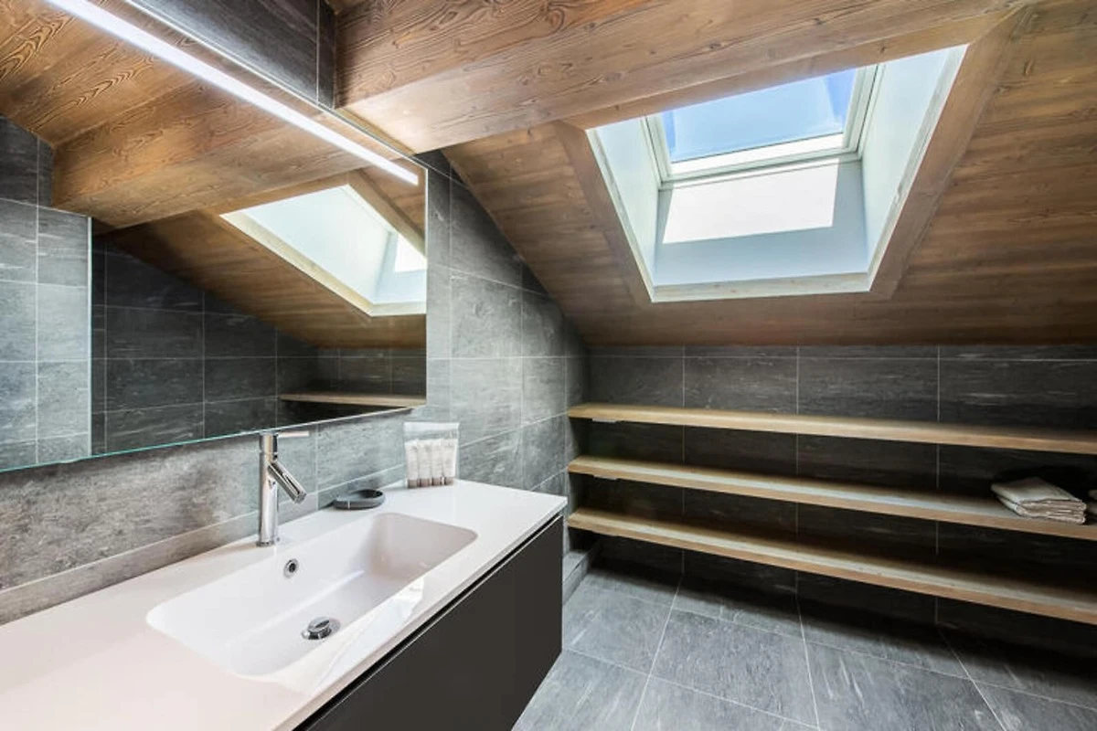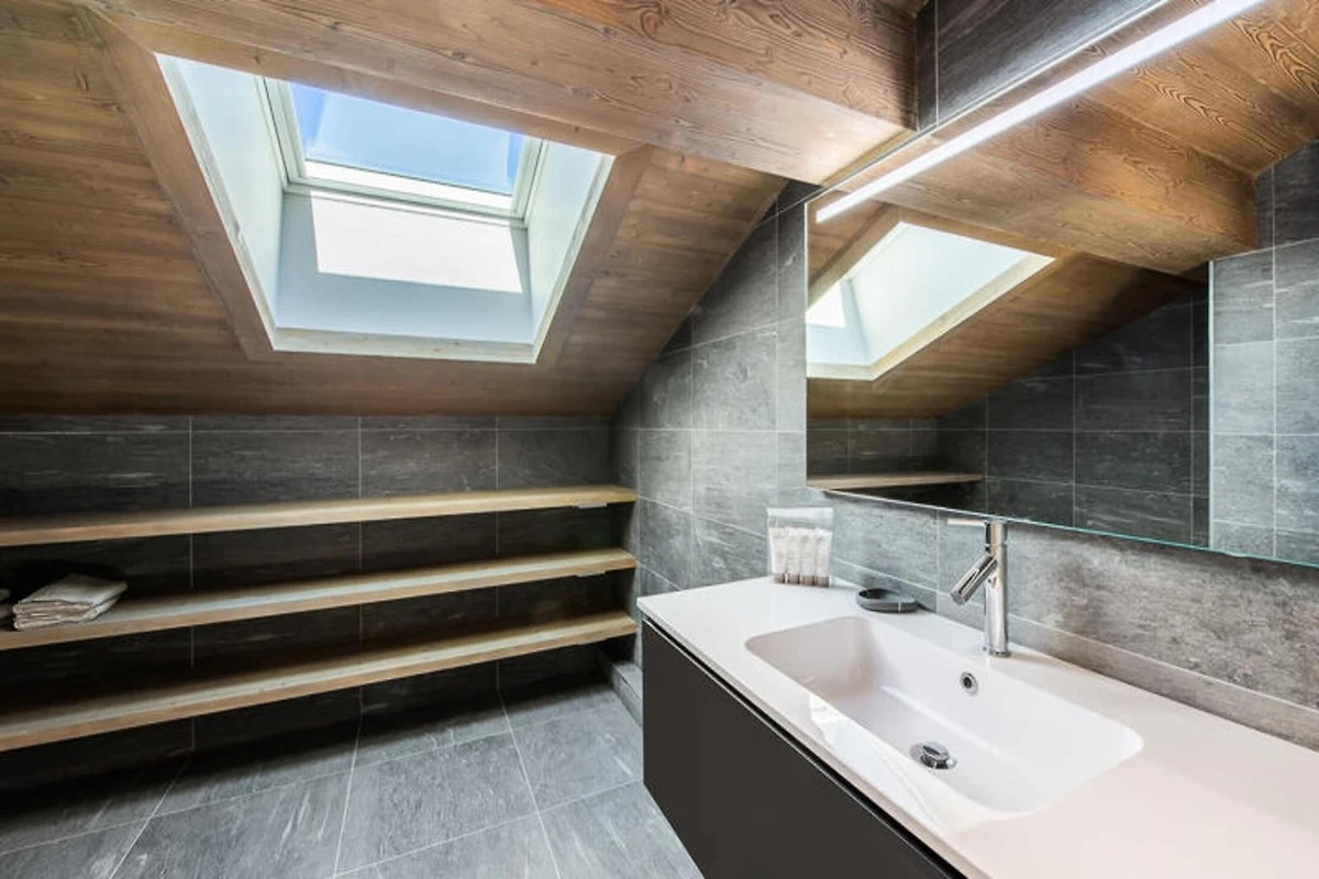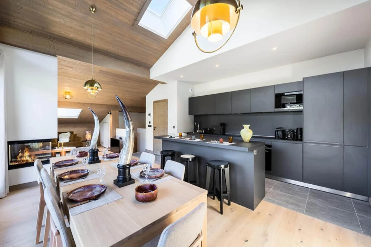 Das Anwesen liegt im ruhigen Stadtteil Rochebrune in Megève, weniger als 10 Autominuten vom Stadtzentrum entfernt und bietet einen ruhigen Rückzugsort in der Nähe lokaler Sehenswürdigkeiten. Die nächste Bushaltestelle, Faucigny, ist nur einen kurzen Spaziergang entfernt und bietet eine gute Anbindung an die Stadt und die umliegenden Gebiete. Die wichtigsten Annehmlichkeiten von Megève, darunter Geschäfte, Restaurants und die Skipisten, sind alle leicht mit öffentlichen Verkehrsmitteln oder einer kurzen Autofahrt zu erreichen. Für Flugreisende ist der internationale Flughafen Genf etwa 1,5 Stunden entfernt und bietet bequeme Verbindungen zum Resort.