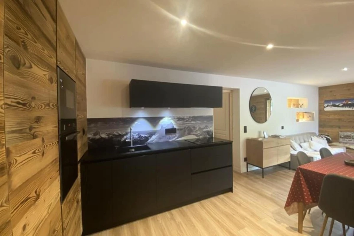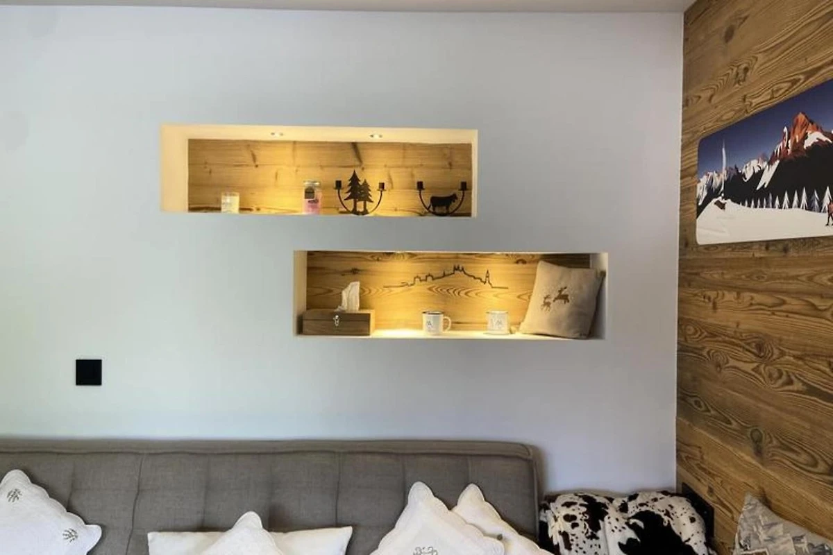 Die Küche des Apartments ist komplett mit modernen Geräten ausgestattet, darunter ein Induktionskochfeld, ein Backofen, ein Kühlschrank mit Gefrierfach, eine Mikrowelle, ein Geschirrspüler und eine Nespresso-Maschine. Ein hölzerner Esstisch bietet Platz für Mahlzeiten und der Wohnbereich verfügt über ein großes Erkerfenster mit Blick auf das Dorf und die Berge. Zu den weiteren Ausstattungsmerkmalen gehören ein privater überdachter Parkplatz, ein gemeinsamer Skiraum zur Aufbewahrung der Ausrüstung und eine elektrische Fußbodenheizung, die für Komfort während Ihres Aufenthalts sorgen. Für zusätzlichen Komfort ist die Unterkunft auch mit einem gemeinsamen Skiraum ausgestattet.