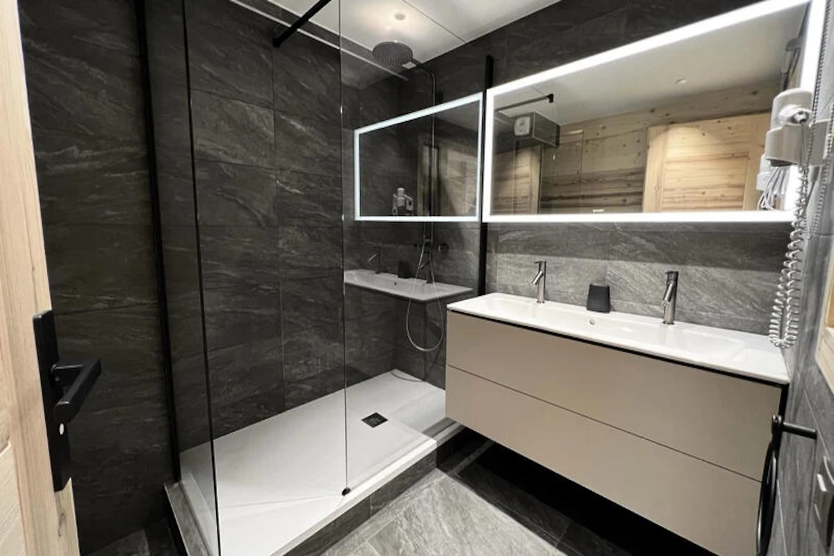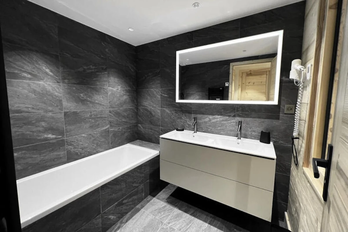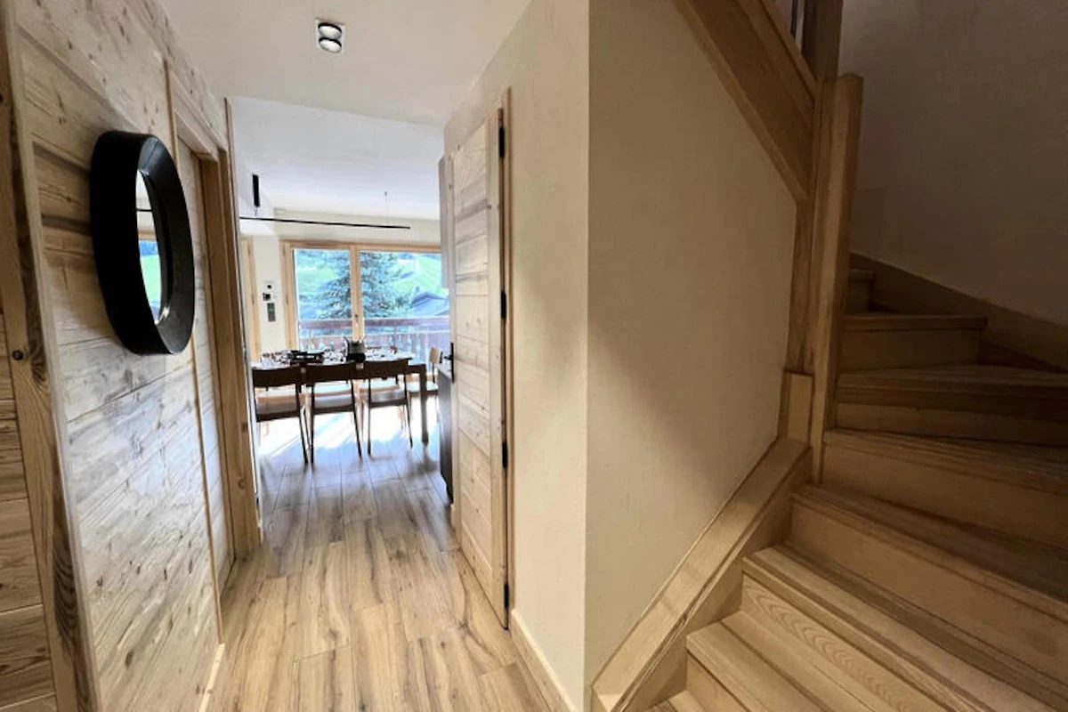 Das Anwesen bietet zusammen mit einer großzügigen Raumaufteilung eine luxuriöse Ferienwohnung für bis zu 10 Personen. Das Wohnzimmer verfügt über ein Sofa, einen Sessel und ein zusätzliches Schlafsofa und ist somit ideal für größere Gruppen. Den Gästen steht ein 12,32 m² großer Balkon mit zwei Liegestühlen zur Verfügung, der zum Entspannen und Genießen der Aussicht einlädt. Die Wohnung verfügt über vier Schlafzimmer, davon zwei Zweibettzimmer auf der ersten Ebene und ein großes Zimmer mit vier Einzelbetten auf der zweiten. Zu den weiteren Annehmlichkeiten gehören WLAN, ein Ethanolkamin (Brennstoff nicht im Lieferumfang enthalten), ein privater Garagenplatz und ein Skiraum mit Schuh- und Handschuhtrockner. Haustiere sind nicht gestattet und die Wohnung ist nicht für Personen mit eingeschränkter Mobilität geeignet. Gäste können auch zusätzliche Dienstleistungen wie Bettwäsche, Babyausstattung und Endreinigung mieten.