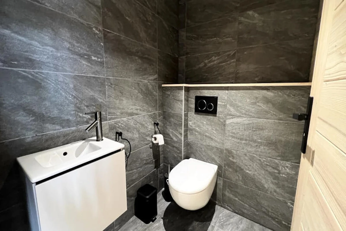Die voll ausgestattete Küche bietet moderne Annehmlichkeiten wie ein Cerankochfeld, einen Kühlschrank, eine Mikrowelle, einen Geschirrspüler und eine Kaffeemaschine, sodass Sie während Ihres Aufenthalts problemlos Mahlzeiten zubereiten können. Zu den weiteren praktischen Einrichtungen gehören ein Waschraum mit Waschmaschine und Trockner sowie separate Badezimmer mit Doppelwaschbecken. Heizung, Strom und Wasser sind im Preis inbegriffen und sorgen für einen komfortablen Aufenthalt. Das Apartment verfügt außerdem über ein Willkommenspaket mit wichtigen Dingen wie Toilettenpapier und Müllbeuteln. Optionale Dienstleistungen wie der Verleih von Bettwäsche können im Voraus vereinbart werden.