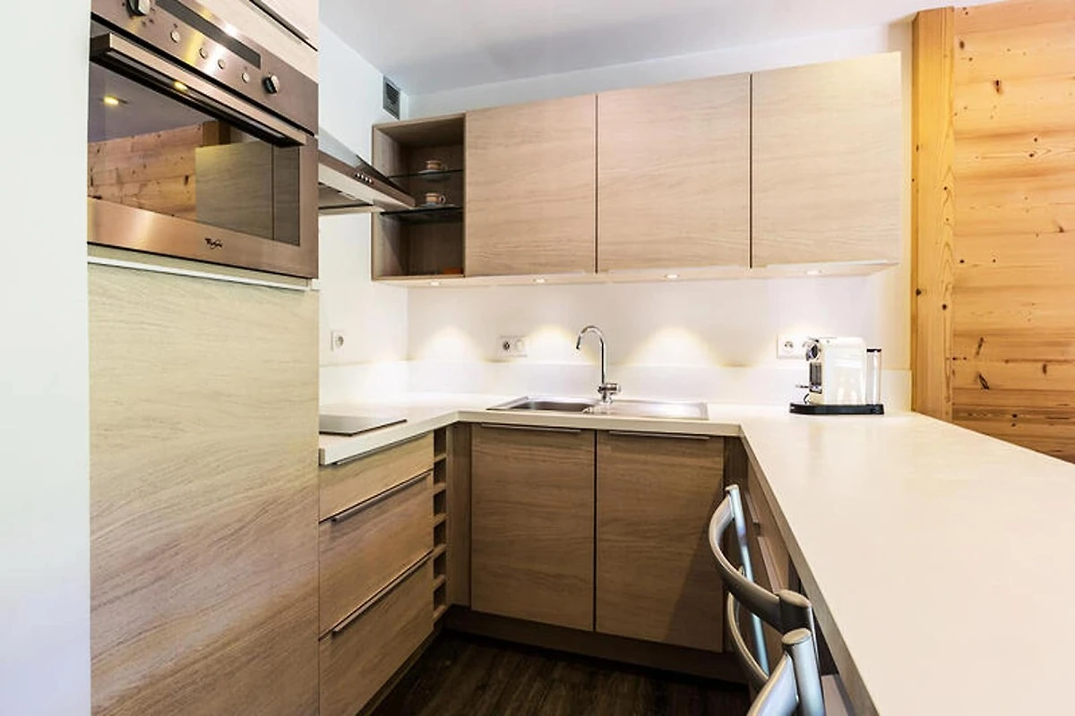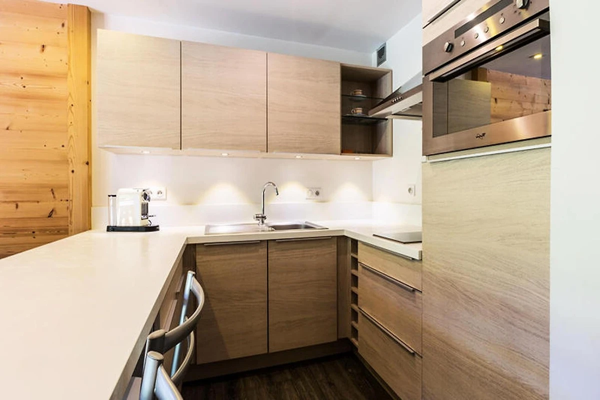 Die Residenz liegt in einer Fußgängerzone und bietet eine ruhige Atmosphäre und dennoch einfachen Zugang zu Geschäften und Annehmlichkeiten. Parkplätze stehen in der Nähe zur Verfügung und die Wohnung verfügt über einen Fahrradkeller mit Skiständern und einem Schuhtrockner. Gäste können auch den Komfort einer gemeinschaftlichen Tiefgarage genießen. Für Ihren Komfort können Sie Bettwäsche und Haushaltswäsche mieten.