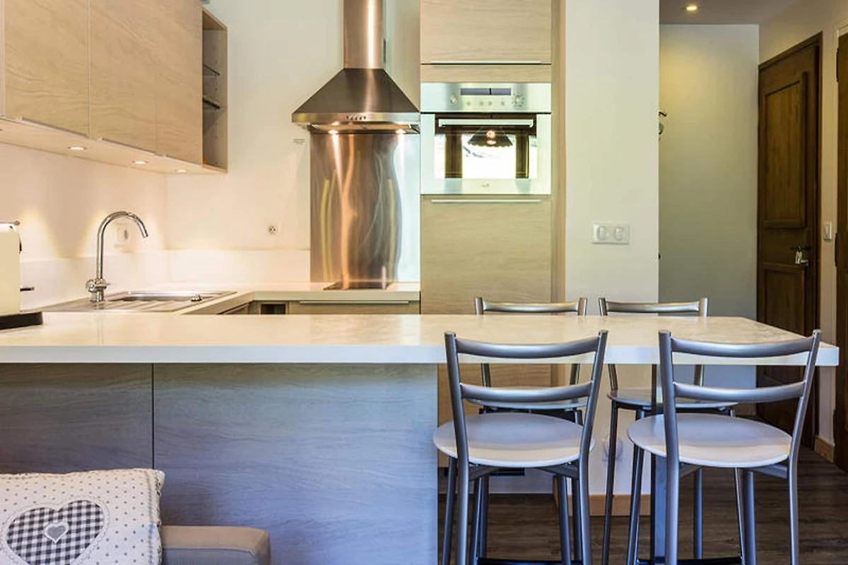 Diese charmante 2-Zimmer-Wohnung im Herzen von La Clusaz bietet den perfekten Ausgangspunkt für einen Skiurlaub. Dieses 33 m² große Apartment liegt am Fuße der Skipisten von Champ Giguet, in der Nähe der ESF-Skischule und der Kindertagesstätten und ist ideal für bis zu 4 Personen. Genießen Sie ein nach Süden ausgerichtetes Wohnzimmer mit Schlafsofa, TV, DVD-Player und einem Balkon mit herrlichem Blick auf die Pisten. Die offene Küche ist komplett ausgestattet mit Induktionskochfeldern, einem kombinierten Backofen + Mikrowelle, einem Geschirrspüler, einem Kühlschrank und einer Kaffeemaschine. Das Schlafzimmer ist gemütlich mit zwei Einzelbetten und einem Südfenster ausgestattet, während das moderne Duschbad über eine ebenerdige Dusche und WC verfügt.