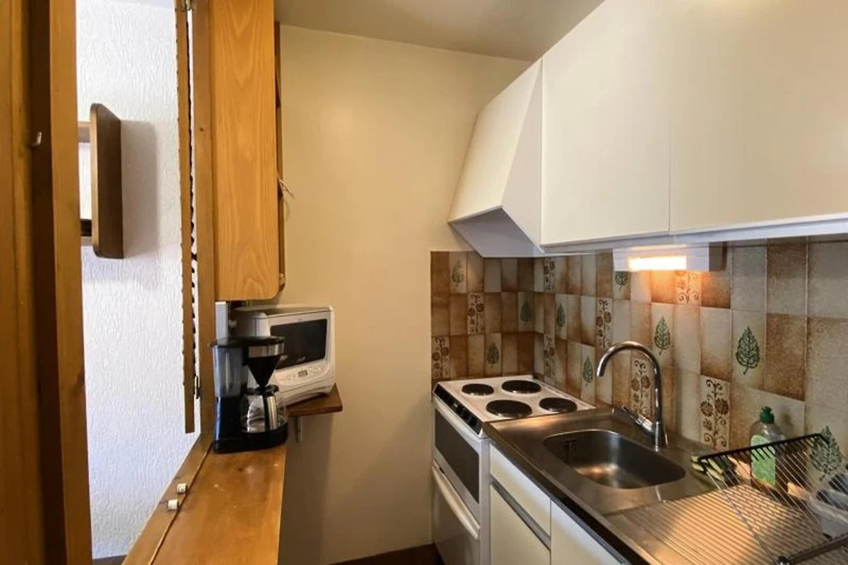 Die Küche des Apartments ist mit den wichtigsten Geräten ausgestattet, darunter ein Kühlschrank (127 l), ein Elektroherd, ein Backofen und eine Mikrowelle, sodass Sie sich bequem selbst versorgen können. Ein Badezimmer mit Badewanne und WC rundet die funktionale Ausstattung der Wohnung ab. Die Residenz verfügt außerdem über einen Skiraum zur Aufbewahrung der Ausrüstung und eine Zentralheizung für Komfort. Der Zugang zum 1978 erbauten Gebäude erfolgt über eine Außentreppe, wodurch ein gemütliches und traditionelles Bergambiente erhalten bleibt.