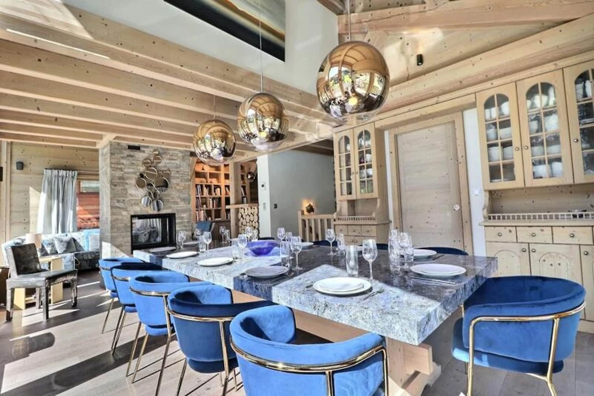 Das Anwesen bietet zusammen mit seinem luxuriösen Design und den hochwertigen Annehmlichkeiten ein geräumiges Chalet, das bequem Platz für bis zu 10 Personen bietet. Das Chalet verfügt über 4 Schlafzimmer, jedes mit eigenem Bad und Kingsize-Betten (180), die für mehr Flexibilität in zwei Einzelbetten umgewandelt werden können. Der Wohnbereich umfasst einen großen Marmor-Esstisch und einen Kamin, der zwei Wohnzimmer trennt, sowie einen Barbereich. Entspannen Sie auf dem großen Balkon rund um das Chalet, der einen atemberaubenden Blick auf die umliegenden Pisten bietet. Haustiere sind in dieser Unterkunft nicht gestattet und das Rauchen ist verboten. Gegen eine zusätzliche Gebühr können zusätzliche Dienstleistungen wie Flughafen- oder Bahnhofstransfers, der Verleih von Skiausrüstung sowie private Koch- oder Reinigungsdienste arrangiert werden, die Ihrem Aufenthalt einen Hauch von Komfort und Luxus verleihen.