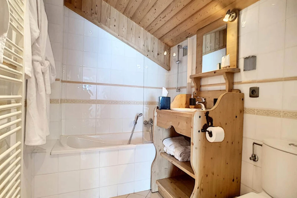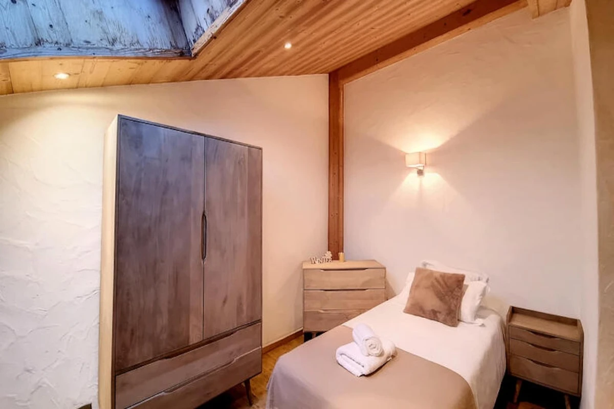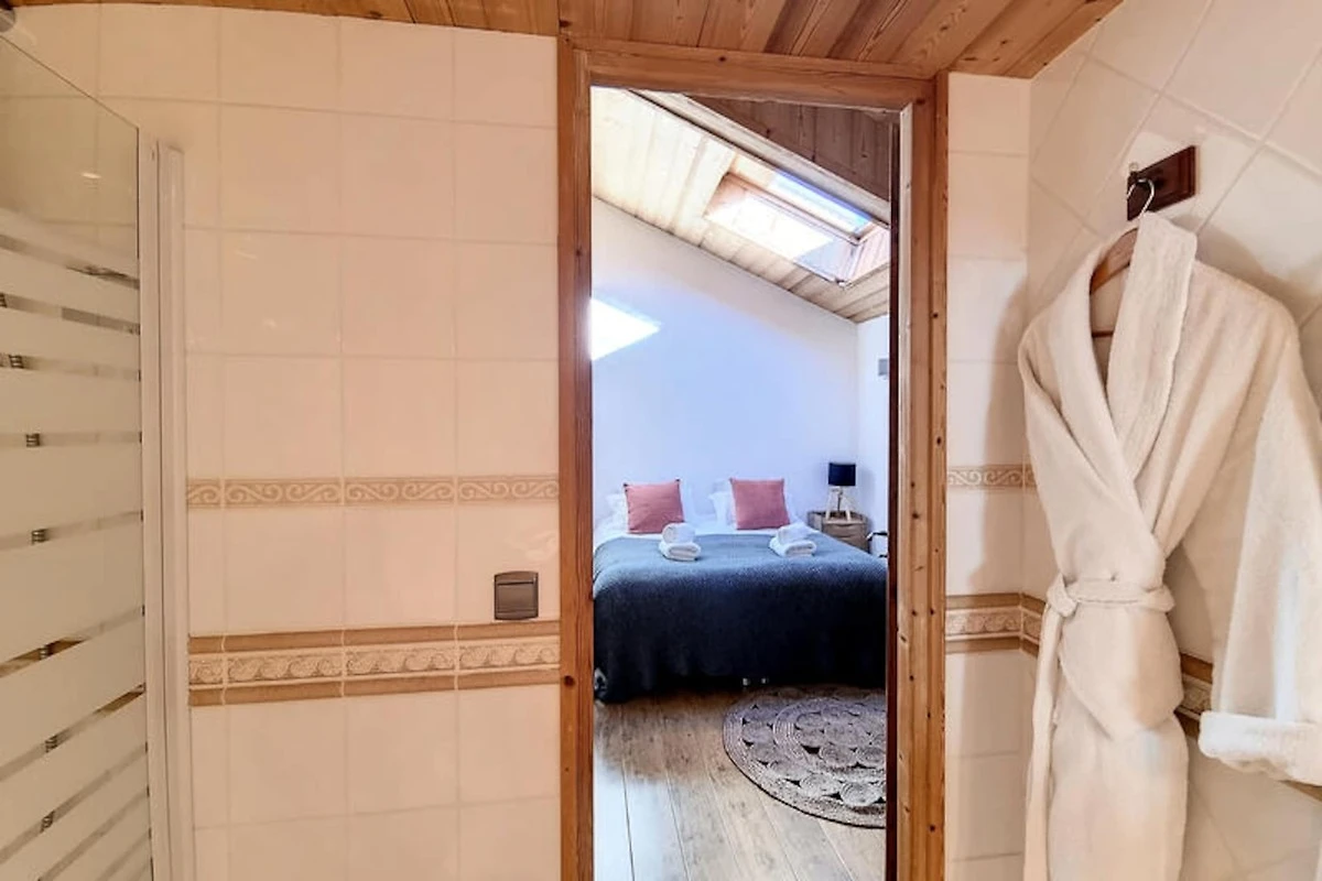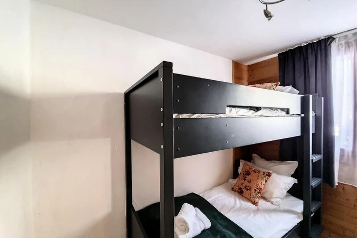 Die Schlafzimmer des Chalets sind auf Ihren Komfort ausgelegt. Das Hauptschlafzimmer verfügt über ein Doppelbett (180 x 200), das in zwei Einzelbetten (90 x 200) getrennt werden kann, und verfügt über ein eigenes Duschbad. Die anderen beiden Schlafzimmer verfügen ebenfalls über ein eigenes Bad, was Privatsphäre und Komfort gewährleistet. Die verspielten Etagenbetten des zweiten Schlafzimmers eignen sich perfekt für Familien oder Gruppen. Für zusätzlichen Komfort sorgen ein privater Parkplatz im Freien und ein Skiraum, sodass Sie nach einem Tag auf der Piste problemlos auf Ihre Ausrüstung zugreifen können.