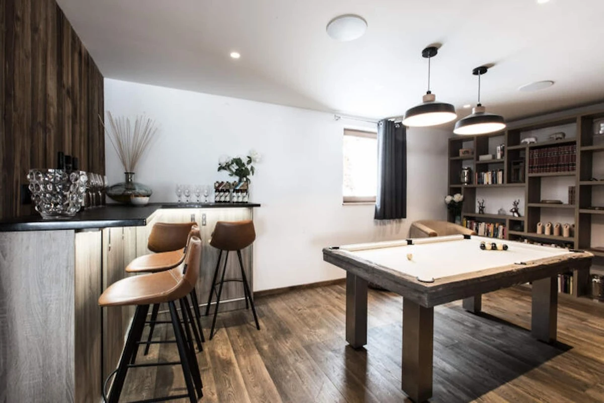 Das Chalet ist verkehrsgünstig gelegen, nur 80 Meter von den Skipisten entfernt und nur wenige Gehminuten von der Ganzjahres-Rodelbahn entfernt. Die Residenz verfügt über einen Entspannungsbereich mit Hamam und Sauna, ein Spielzimmer mit Billard und Darts, einen Kinoraum mit Streaming-Diensten und einer PlayStation 4 sowie einen Fitnessraum. Die Gäste können den Außenbereich mit einem Whirlpool für 12 Personen, einem Loungebereich, einem Gasgrill und Liegestühlen auf der großen Terrasse genießen, ideal zum Entspannen mit Familie und Freunden.