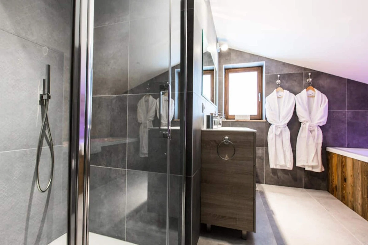 Dieses Luxus-Chalet bietet eine außergewöhnliche Fläche von 500 m² auf vier Ebenen und bietet Platz für bis zu 14 Gäste. Das Chalet verfügt über 7 geräumige Schlafzimmer, jedes mit eigenem Bad, Fernseher und Ankleidezimmer. Die 40 m² große Master-Suite verfügt über ein Kingsize-Bett, ein angrenzendes Badezimmer mit italienischer Dusche und Phototherapie-Badewanne sowie einen Fernseher. Die erste Etage verfügt über einen großen Wohnbereich mit einer voll ausgestatteten Küche, einem Esszimmer und einem gemütlichen Wohnzimmer mit Kamin. Ein Panoramabalkon bietet einen atemberaubenden Blick auf die Skipisten von Perrières.