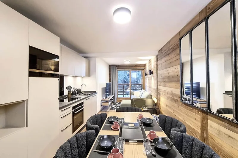 Die Küche des Apartments ist mit modernen Geräten wie einem Herd, einem Backofen, einem Kühlschrank und einem Geschirrspüler komplett ausgestattet, um einen Selbstversorger-Aufenthalt zu ermöglichen, sodass Gäste problemlos Mahlzeiten zubereiten können. Für gemeinsame Mahlzeiten steht ein Essbereich zur Verfügung, der eine warme und einladende Atmosphäre schafft. Zur weiteren Ausstattung des Apartments gehört ein großzügiges Wohnzimmer mit bequemen Möbeln und TV-Zugang für die Freizeit, was es zu einem einladenden Ort zum Entspannen nach einem Tag voller Aktivitäten macht. Die Liebe zum Detail, einschließlich des privaten Skiraums und des luxuriösen Spa-Zugangs, steigert das Gesamterlebnis und sorgt dafür, dass die Gäste während ihres Aufenthalts sowohl Komfort als auch Bequemlichkeit genießen.