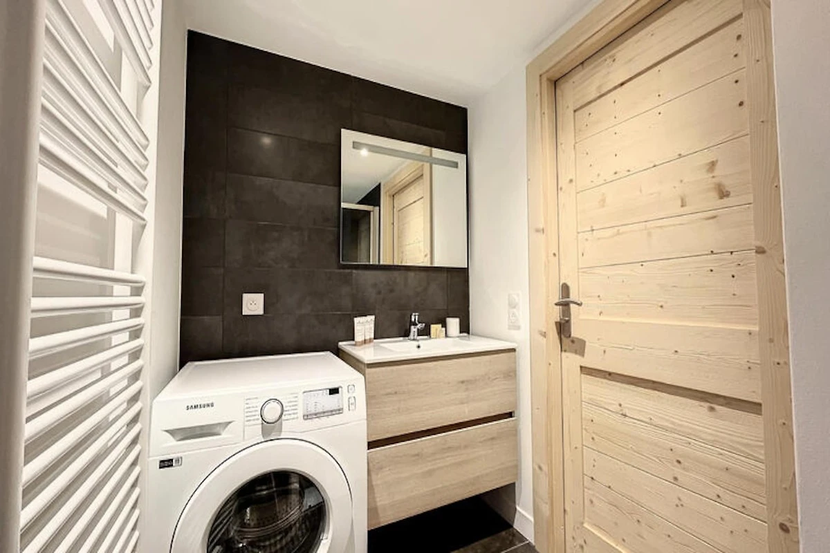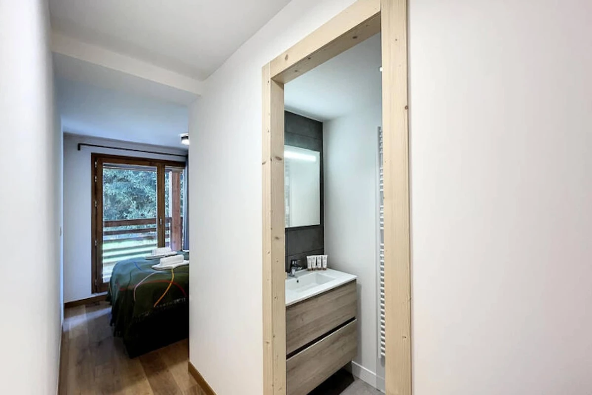 Das Anwesen bietet zusammen mit seinem eleganten Design ein gut ausgestattetes Ferienhaus, das sich perfekt für eine kleine Familie oder Gruppe eignet. Es verfügt über zwei komfortable Schlafzimmer: eines mit einem 160 cm breiten Doppelbett und einem eigenen Duschbad und ein zweites mit einem 140 cm breiten Doppelbett. Der Wohnraum umfasst eine gemütliche TV-Lounge mit direktem Zugang zu einer Terrasse, ideal zum Entspannen. Die Wohnung bietet Platz für bis zu 4 Personen und ist somit ein idealer Rückzugsort für einen ruhigen Aufenthalt. Zusätzlich zum geräumigen Wohnbereich bietet die Residenz eine große geschlossene Garage, ausgestattet mit einer Steckdose zum bequemen Aufladen von Elektrofahrzeugen oder Fahrrädern. Gäste profitieren außerdem von einem privaten Skiraum innerhalb der Residenz, der eine sichere Aufbewahrung der Ausrüstung gewährleistet. Obwohl Haustiere nicht erwähnt werden, können Gäste den exklusiven Zugang zum Spa „Les Sources du Chéry“ genießen, einen kostenpflichtigen Service, der ihrem Aufenthalt zusätzliche Entspannung verleiht.