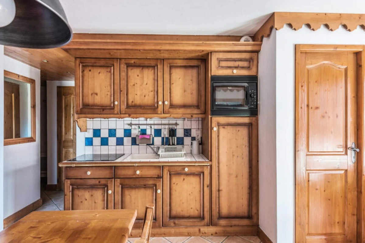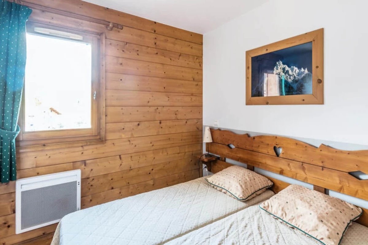 Dieses charmante Apartment in einem Holzchalet liegt im familienfreundlichen Ferienort Carroz d'Arraches und bietet eine gemütliche und von den Bergen inspirierte Atmosphäre. Die Wohnung befindet sich im ersten Stock von Chalet D und verfügt über eine großzügige Raumaufteilung von 45 m² mit 2 Schlafzimmern, 2 Bädern, einem separaten WC und einem Südbalkon. Das Wohnzimmer verfügt über ein Schlafsofa (für 2 Personen) und die Küche ist zum Wohnraum hin offen, ideal zum Entspannen nach einem Ski- oder Wandertag. Zur Entspannung haben Gäste Zugang zu einem beheizten Innenpool, einer Sauna und einem Whirlpool (ab 15 Jahren).