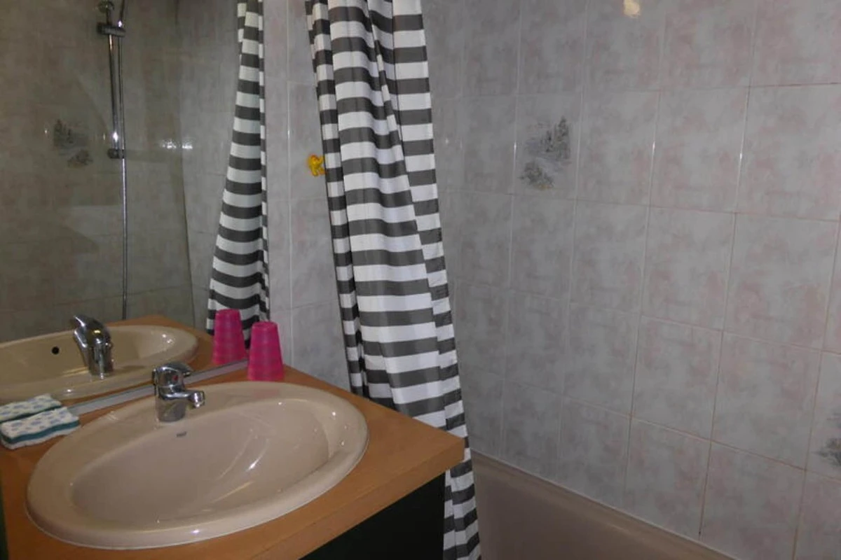 Dieses gemütliche 2-Zimmer-Kabinenapartment befindet sich im 1. Stock eines Gebäudes und bietet einen komfortablen Aufenthalt für bis zu 5 Gäste. Das Apartment verfügt über ein Wohnzimmer mit Schlafsofa, Fernseher und Essbereich. Das Schlafzimmer ist mit einem Doppelbett ausgestattet und es gibt eine Kabine mit einem Einzelbett. Ein Badezimmer mit Badewanne, Waschbecken, beheiztem Handtuchhalter und Toilette sorgt für zusätzlichen Komfort. Haustiere sind mit Ausnahme von Katzen nicht gestattet, um eine ruhige Umgebung für alle Gäste zu gewährleisten. Darüber hinaus gibt es Parkplätze im Freien und einen Skiraum für einfachen Zugang zu Outdoor-Aktivitäten.