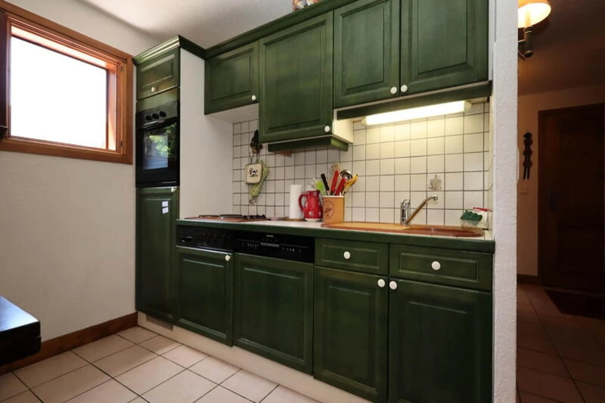 Dieses gemütliche, 50 m² große Apartment in Les Houches ist ideal für Familien oder Freunde und bietet Platz für bis zu 4 Gäste. Es verfügt über ein Schlafzimmer mit einem 160 cm breiten Doppelbett, ein zweites Schlafzimmer mit Etagenbett und ein Duschbad mit WC. Das Wohnzimmer öffnet sich zu einer Terrasse und ist mit einer Küchenzeile mit 4 Cerankochfeldern, einem Backofen, einem Kühlschrank, einem Geschirrspüler und einer Waschmaschine ausgestattet. Die Unterkunft ist haustierfreundlich, sodass Sie Ihre vierbeinigen Freunde für den Aufenthalt mitbringen können. Bitte beachten Sie, dass kein Fernseher verfügbar ist.