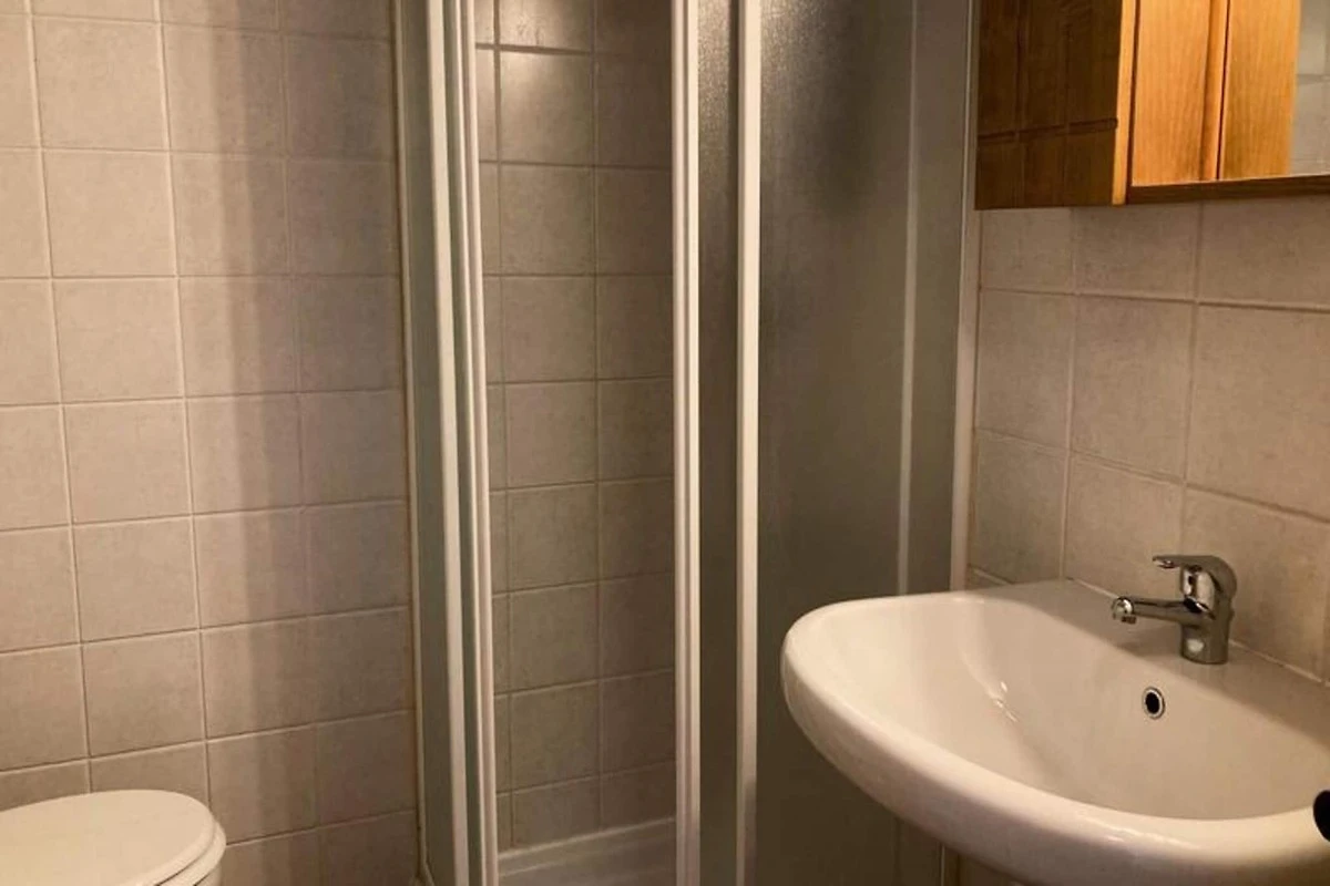 - Een doucheruimte met douche, wastafel, bidet en toilet.