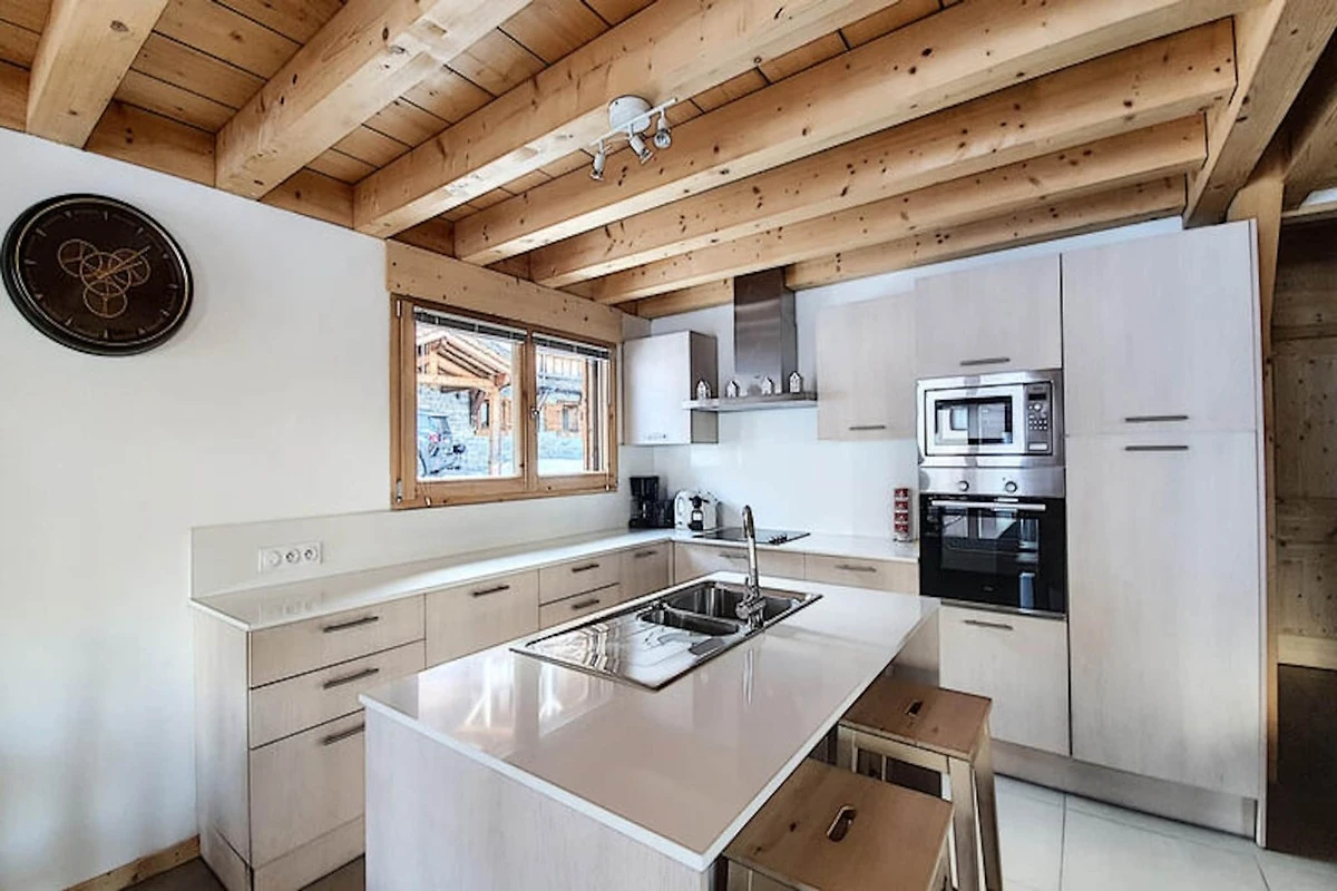 Das Chalet ist komplett für einen Aufenthalt zur Selbstverpflegung ausgestattet und verfügt über eine große amerikanische Küche mit Geschirrspüler, Backofen, Kühlschrank und Kaffeemaschine. Es umfasst auch einen Waschraum mit Waschmaschine und Trockner. Die Badezimmer sind modern, einige verfügen über Handtuchtrockner und eine Sauna für zwei Personen. Draußen erwartet die Gäste eine Terrasse mit Gartenmöbeln und einem Grill sowie ein Pétanque-Platz für zusätzliche Unterhaltung. Zu den weiteren Annehmlichkeiten gehören WLAN und zwei Raclette-Geräte für gemeinsame Mahlzeiten.