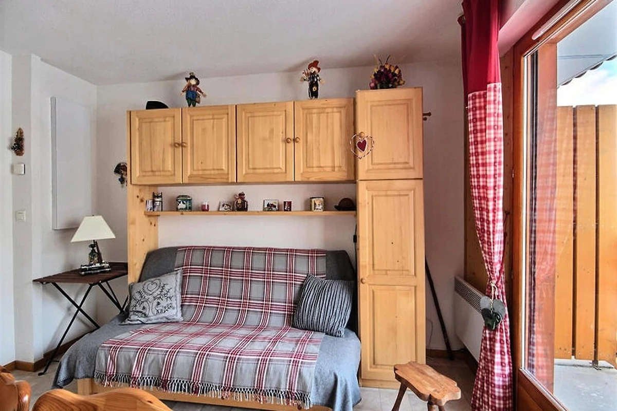 Im Inneren verfügt das Apartment über eine voll ausgestattete Küche mit Mikrowelle, Backofen, 2-Flammen-Elektroherd, Kühlschrank und Kaffeemaschine, sodass Sie Ihre Mahlzeiten problemlos zubereiten können. Der Wohnbereich verfügt über einen Fernseher und einen Esstisch, der Platz für bis zu 4 Personen bietet und sich perfekt zum gemeinsamen Essen eignet. Die Fenstertür führt auf einen Balkon mit Nordblick auf das Tal und bietet einen ruhigen Ort zum Entspannen nach einem Tag auf der Piste.