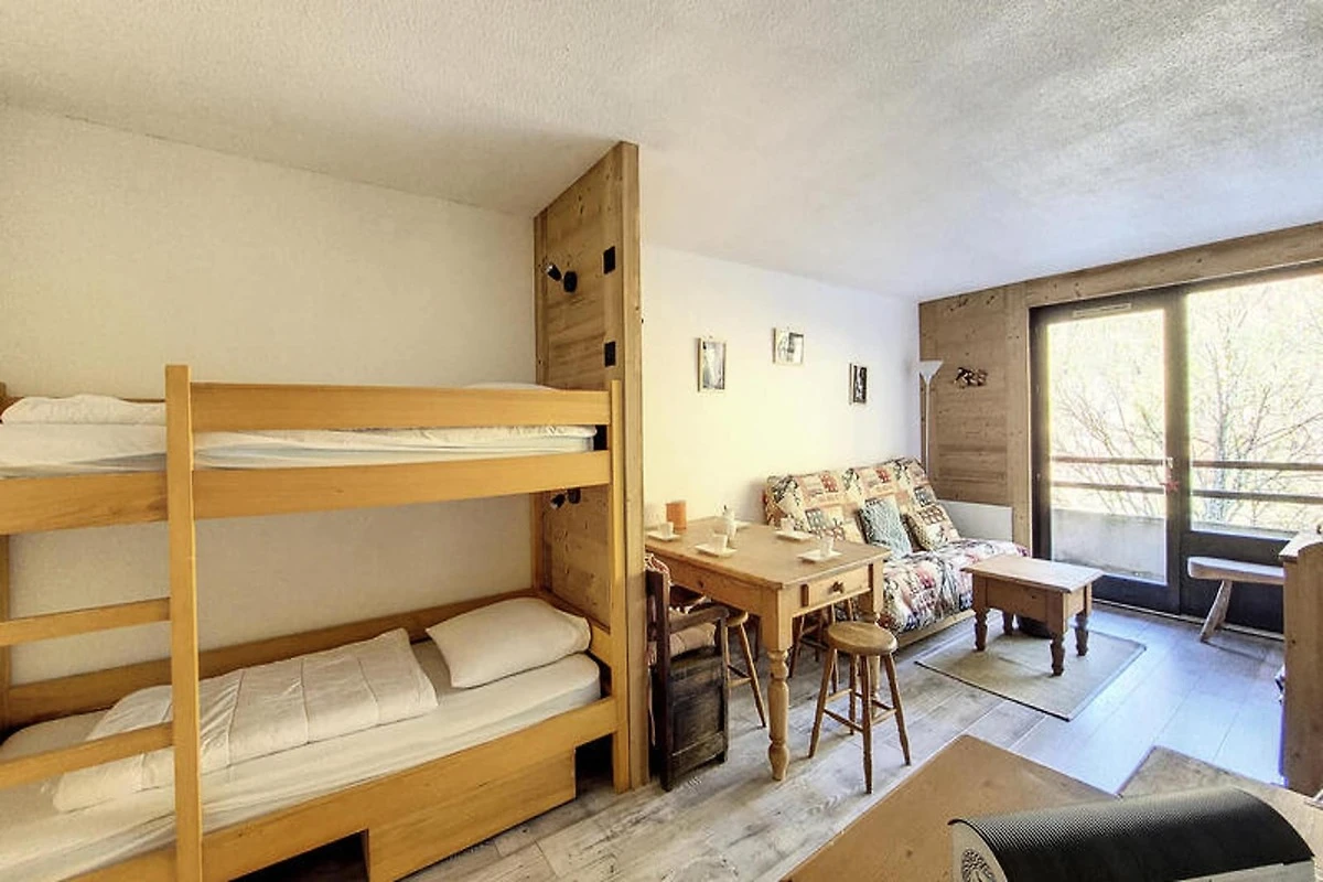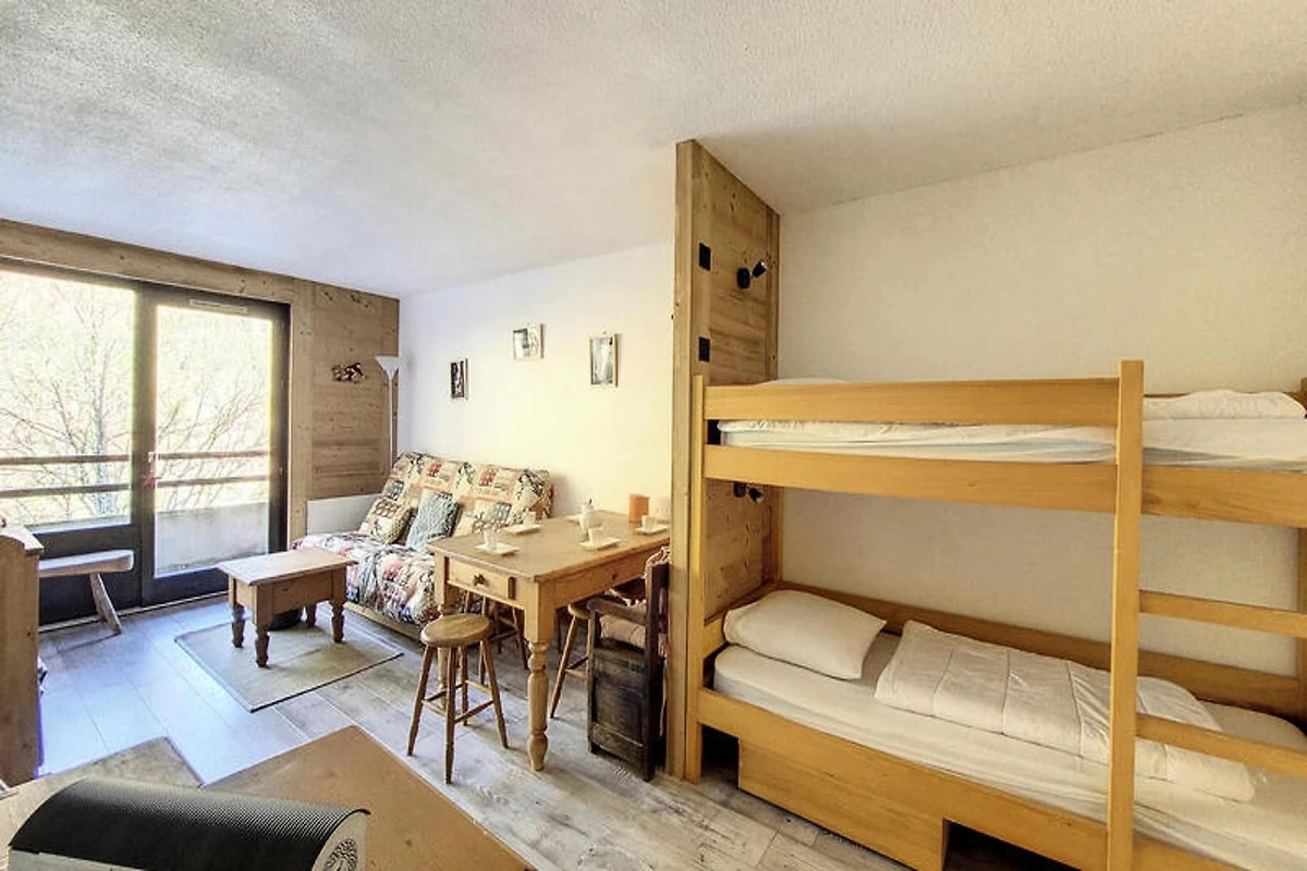 Dieses geräumige Studio-Apartment bietet Platz für 4 bis 6 Personen und bietet einen komfortablen Aufenthalt im Herzen des Skigebiets St. Jean d’Aulps. Es umfasst eine Bergecke mit zwei Etagenbetten, ein Schlafzimmer mit Doppelbett und ein Schlafsofa im Wohnbereich. Haustiere sind nicht gestattet, um eine ruhige Umgebung zu gewährleisten. Den Gästen stehen Bettdecken und Kissen für alle Betten zur Verfügung. Bettwäsche und Handtücher sind nicht im Preis inbegriffen, daher sollten Sie diese selbst mitbringen. Das Apartment bietet außerdem eine Terrasse mit Talblick, Sitzgelegenheiten und Liegestühlen zum Entspannen nach einem Tag auf der Piste.