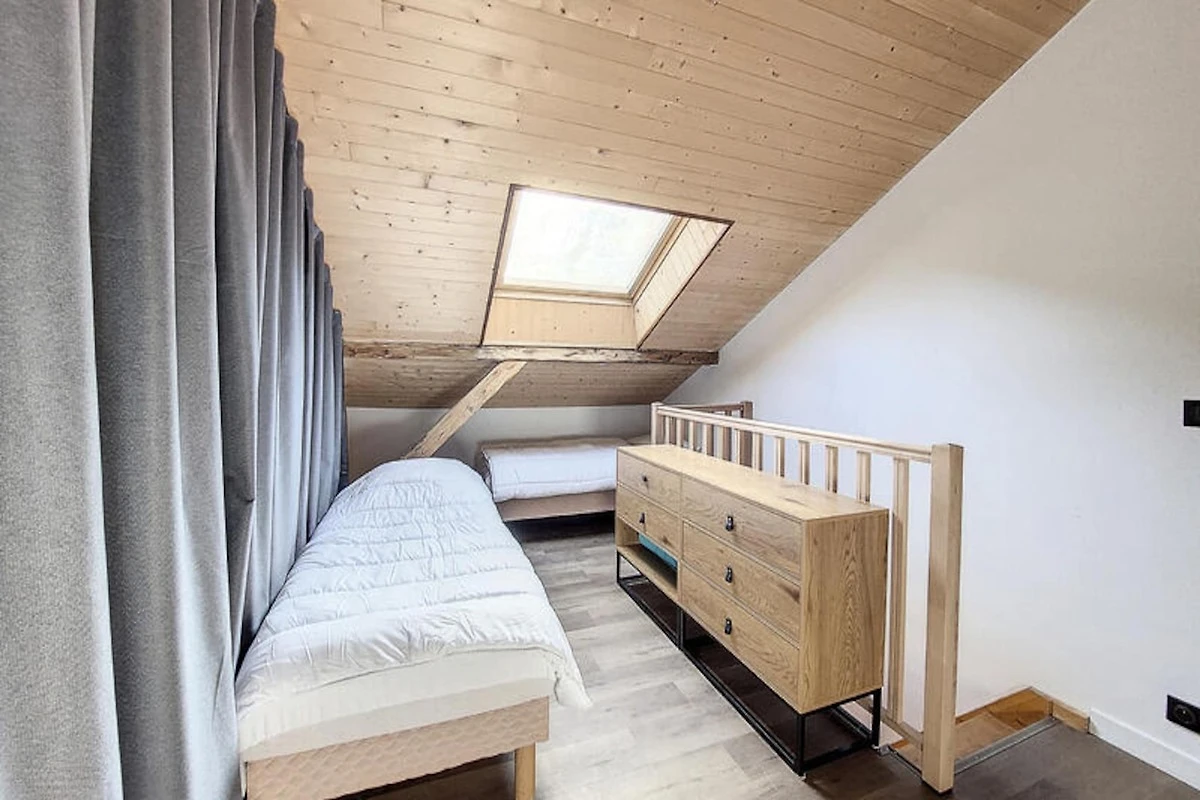 Dieses geräumige Chalet ist ideal für große Gruppen und bietet auf zwei Etagen Platz für bis zu 12 Personen. Das Chalet verfügt über sechs komfortable Schlafzimmer, darunter zwei Master-Suiten mit eigener Dusche, und ein Zwischengeschoss mit vier Einzelbetten. Es verfügt außerdem über ein ausziehbares Sofa im Wohnzimmer, das ausreichend Schlafplatz bietet. Haustiere sind erlaubt (mit Ausnahme von Hunden der Kategorien 1 und 2), was es zu einer guten Wahl für Familien mit Haustieren macht. Bettdecken und Kissen sind für alle Betten vorhanden, Bettwäsche und Handtücher jedoch nicht, daher sollten Gäste diese selbst mitbringen.