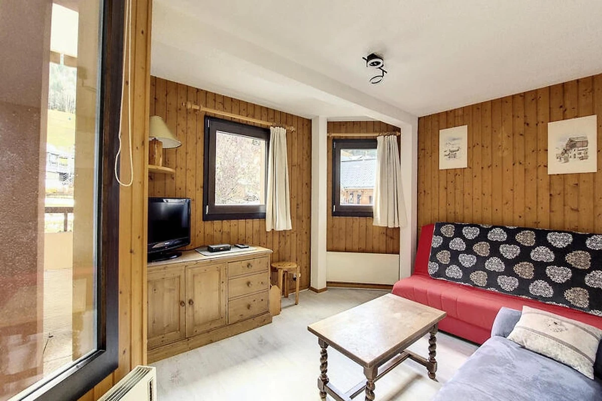 Dieses kürzlich renovierte Apartment liegt ideal im Zentrum des Bahnhofs La Grande Terche und bietet Platz für bis zu 6 Personen. Es verfügt über ein Doppelzimmer mit einem bequemen Bett, ein Einzelzimmer mit Etagenbett und ein Schlafsofa im Wohnzimmer. Die haustierfreie Wohnung sorgt für einen ruhigen Aufenthalt und bietet viel Stauraum. Mit einem Südbalkon genießen Sie den Blick auf die Skipisten und die Abfahrtsstelle der Seilbahn.