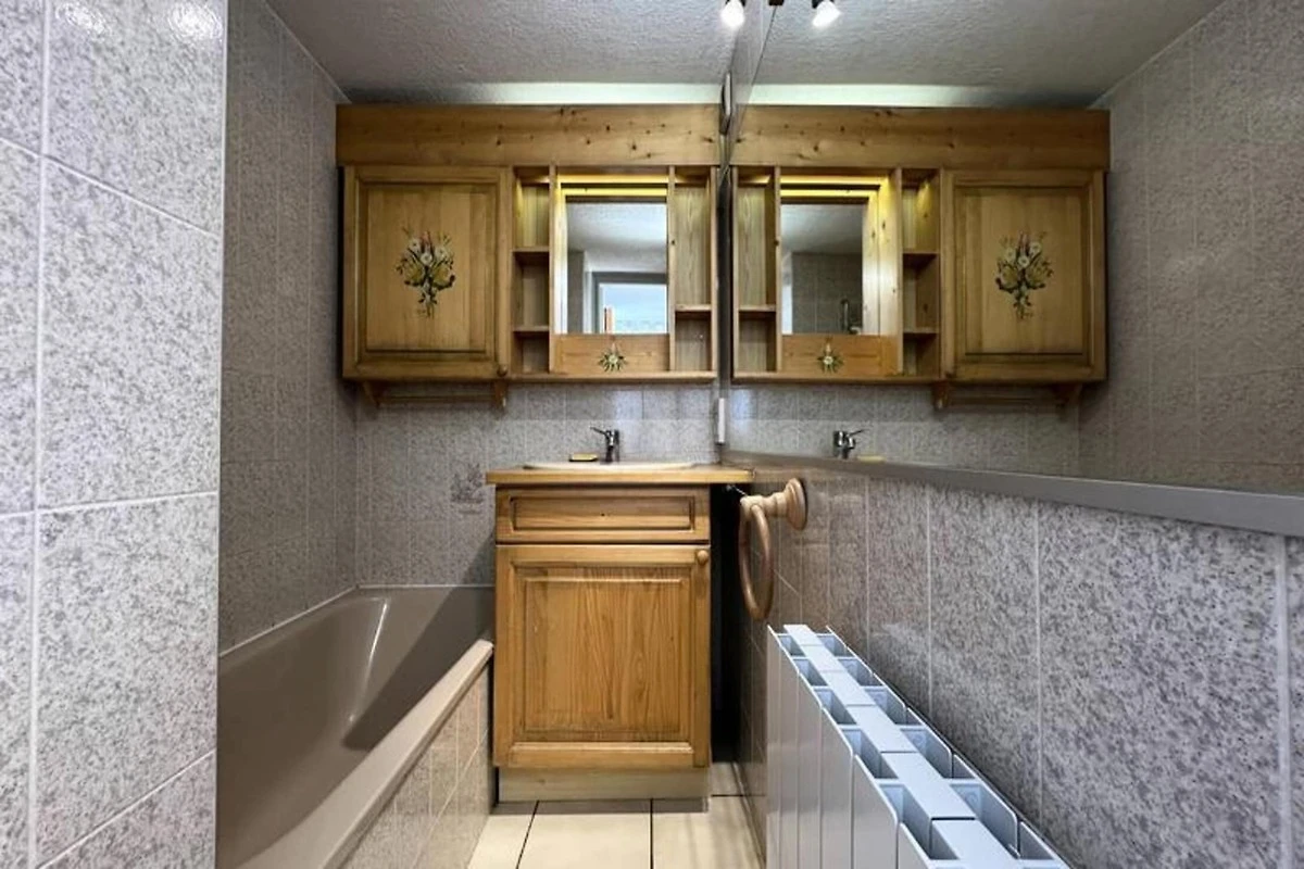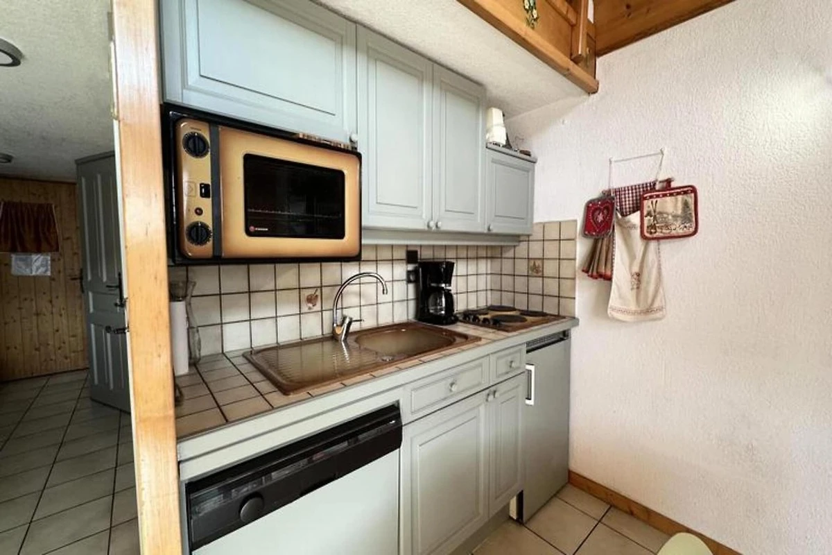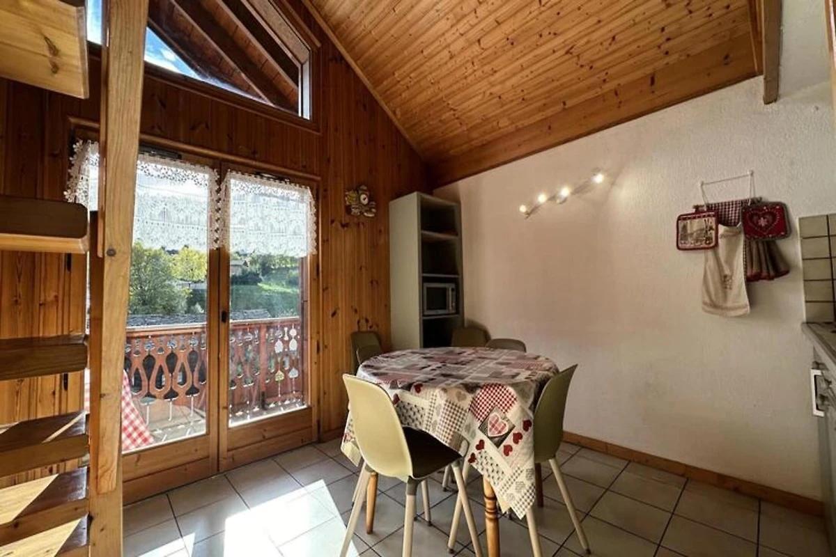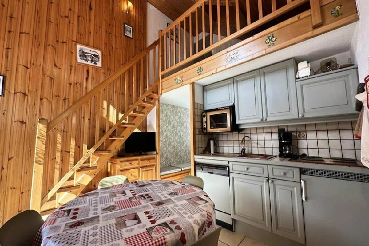 Das Apartment verf�gt �ber eine gut ausgestattete K�che mit den wichtigsten Gerהten, ein Badezimmer mit Dusche und ein separates WC. Der Wohnbereich ist komfortabel und verf�gt �ber einen Esstisch und eine gem�tliche Sitzecke zum Entspannen nach einem Tag beim Skifahren oder Erkunden. Mit einer Flהche von 40 m², einschlie�lich eines 12 m² gro�en Zwischengeschosses, bietet dieses Apartment den perfekten Ausgangspunkt f�r Ihren R�ckzugsort in den Bergen.