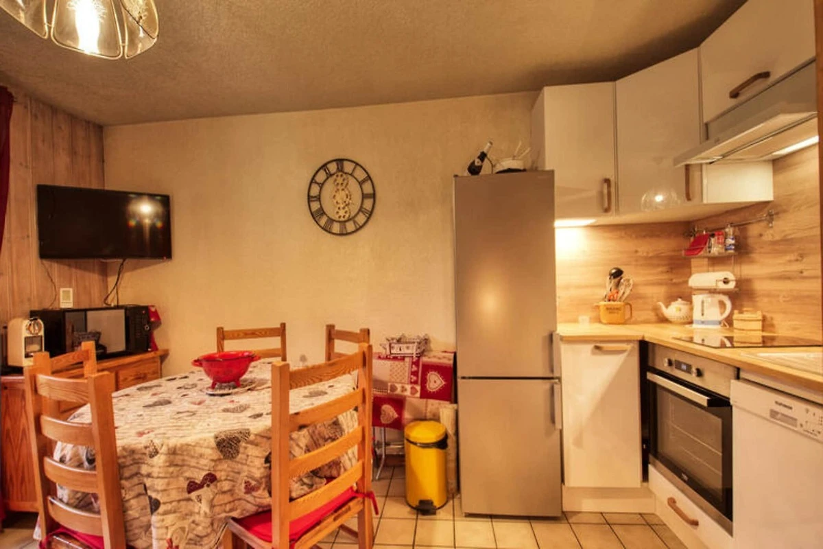 Ideal gelegen, weniger als 500 Meter von der Seilbahnstation entfernt, bietet dieses Apartment einen einfachen Zugang zum Skigebiet und ist somit eine gute Wahl f�r Wintersportler. Der Freizeitpark Lac Bleu liegt ebenfalls in der Nהhe und bietet eine Vielzahl von Outdoor-Aktivitהten. Erkunden Sie das Dorfzentrum, das �ber eine Treppe erreichbar ist, und besuchen Sie die צrtlichen Geschהfte und Cafיs. Die lebhafte Atmosphהre von Morillon bietet den perfekten Rahmen f�r Entspannung und Abenteuer.