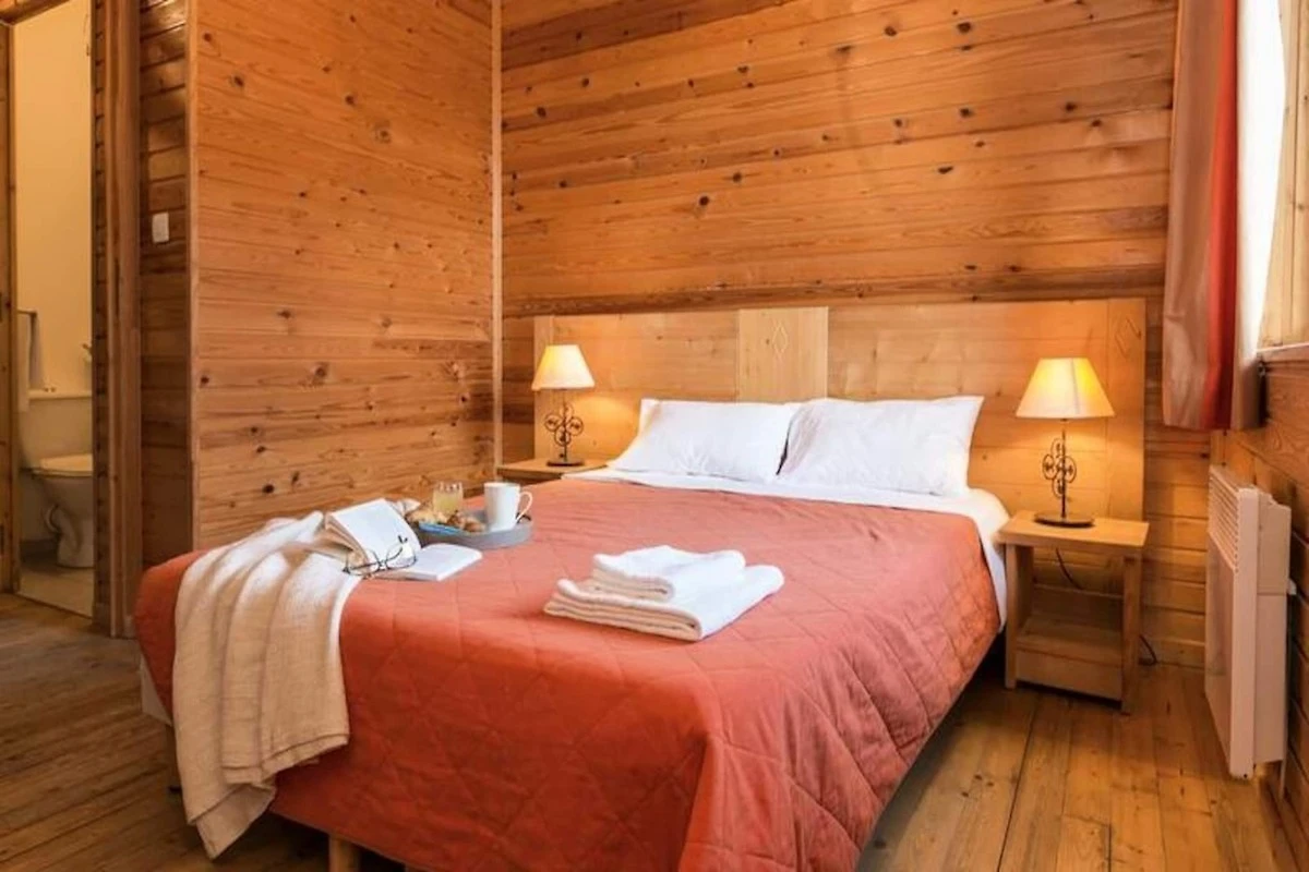 Im Inneren ist das Chalet mit einer voll funktionsfהhigen K�che ausgestattet, die den Gהsten die Mצglichkeit bietet, ihre Mahlzeiten zuzubereiten. Die Unterkunft verf�gt au‗erdem �ber ein Badezimmer mit Dusche und WC, was f�r Komfort und Bequemlichkeit sorgt. Zur Entspannung bietet die Residenz einen beheizten Au‗enpool mit beweglicher Kuppel, einen Fitnessraum und eine Sauna (f�r Personen �ber 16 Jahre). Parkplהtze stehen vor Ort zur Verf�gung, mit einem Parkplatz pro Apartment, so dass Gהste die Gegend bequem mit dem Auto erkunden kצnnen.