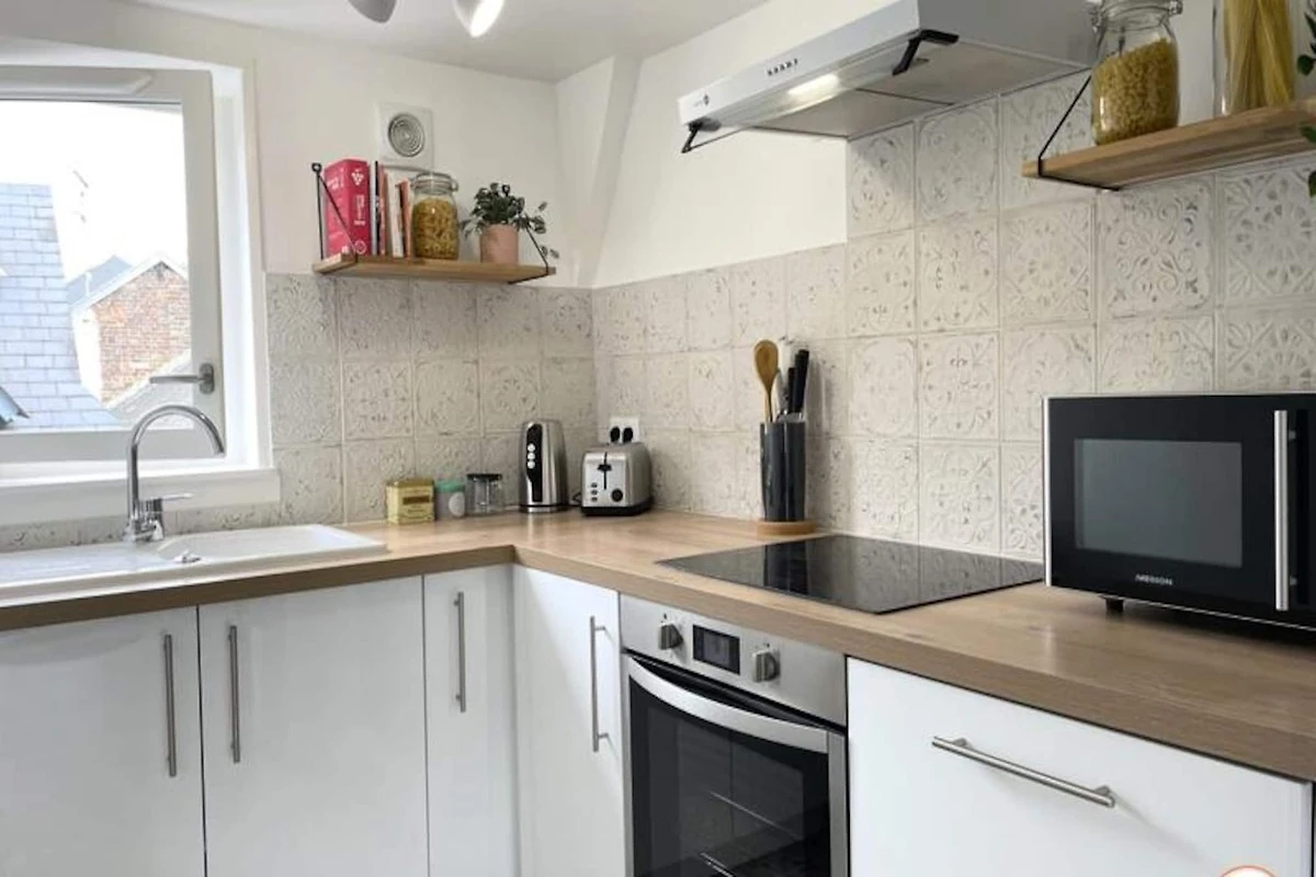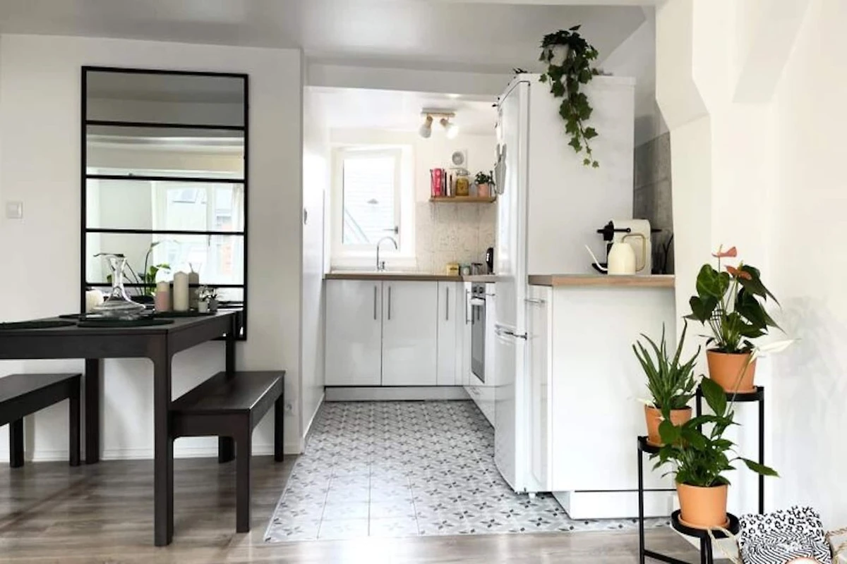 Das Apartment verfügt über eine voll ausgestattete Küche im amerikanischen Stil mit Kühlschrank, Backofen, Induktionskochfeld, Geschirrspüler und Kaffeemaschine. Ein Badezimmer mit Badewanne sorgt für Entspannung nach einem erlebnisreichen Tag. Mit einem geräumigen Wohn- und Essbereich sorgt das Apartment für einen komfortablen und angenehmen Aufenthalt und ist somit perfekt für diejenigen, die in den Charme von Rouen eintauchen und gleichzeitig moderne Annehmlichkeiten genießen möchten.