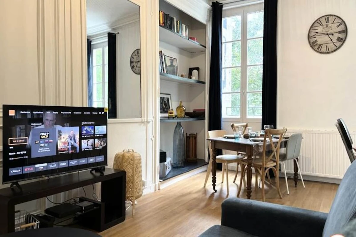 Dieses charmante Apartment liegt im Herzen des historischen Zentrums von Rouen und bietet eine perfekte Mischung aus modernem Komfort und historischem Charme. Es befindet sich in einem denkmalgeschützten Gebäude aus dem 16. Jahrhundert und bietet bequem Platz für bis zu 4 Gäste mit einem geräumigen Schlafzimmer mit einem 160 x 200 cm großen Bett und einem hochwertigen Schlafsofa (140 x 200 cm) im Wohnzimmer. Bettwäsche und Handtücher, kostenfreies WLAN, eine Waschmaschine und ein Bügeleisen sorgen für Ihren Komfort. Bitte beachten Sie, dass in dieser Unterkunft keine Haustiere gestattet sind und festliche Veranstaltungen nicht gestattet sind, um eine friedliche Atmosphäre zu gewährleisten.