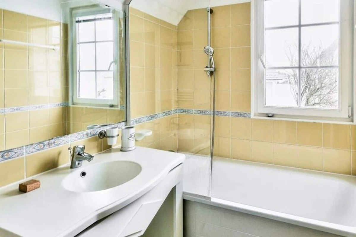 Erleben Sie einen erholsamen Urlaub in diesem charmanten Ferienhaus in Fort-Mahon, eingebettet in einem ruhigen, fußgängerfreundlichen Dorf, das von der Architektur der Picardie inspiriert ist. Das Haus bietet Platz für bis zu sechs Gäste und verfügt über drei Schlafzimmer: ein Doppelzimmer, ein Zweibettzimmer mit zwei Einzelbetten und einen Schlafraum, ideal für Kinder. Ein Badezimmer mit Badewanne-Dusche, separater Dusche und WC sorgen für Komfort. Haustiere sind gegen Aufpreis willkommen und Bettwäsche ist für einen sorgenfreien Aufenthalt im Preis inbegriffen. Ein reservierter Parkplatz sorgt für eine einfache Anfahrt.