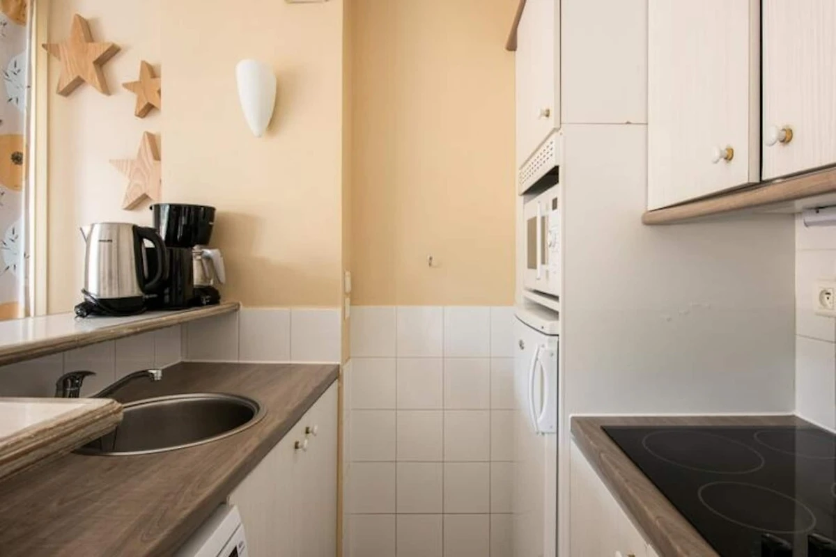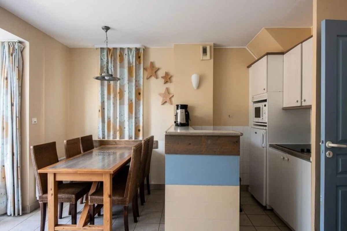 Dieses charmante, 55 m² große Ferienhaus in Fort-Mahon bietet einen komfortablen und geräumigen Aufenthalt für bis zu 6 Gäste. Das Haus verfügt über zwei Schlafzimmer, eines mit einem Doppelbett und das andere mit zwei Einzelbetten, sowie einen geschlossenen Kabinenbereich mit zwei Etagenbetten. Ein neues Schlafsofa im Wohnzimmer bietet zusätzliche Flexibilität für zusätzliche Gäste. Haustiere sind gegen Aufpreis erlaubt, der je nach Unterkunft variieren kann. Bettwäsche wird gestellt und der obligatorische Reinigungsservice ist bei der Ankunft zu bezahlen.