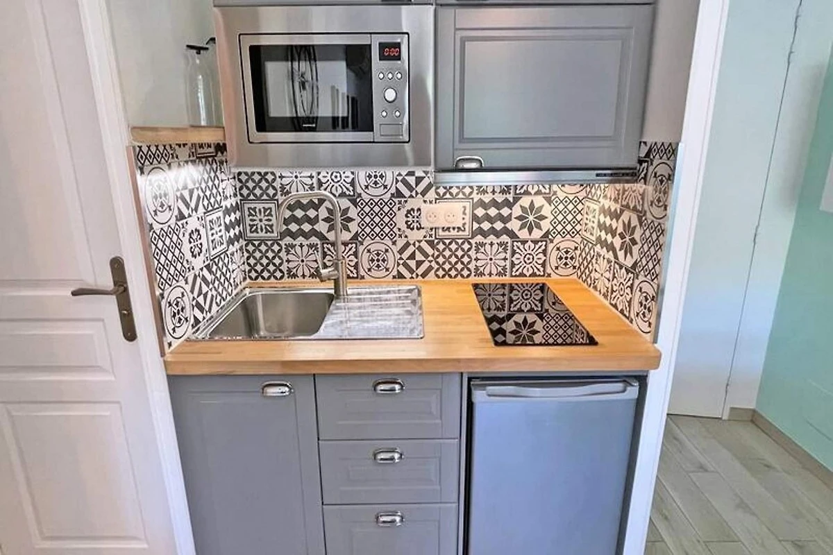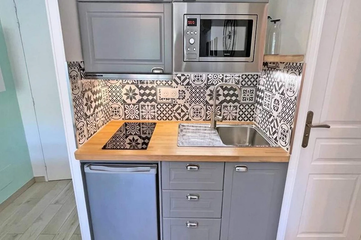 Der 3 m² große Balkon eignet sich perfekt zum Genießen von Mahlzeiten im Freien und in der Residenz ist ein privater Parkplatz vorhanden, allerdings kann die Zufahrt durch einen Tunnel für große Fahrzeuge eng sein. Die Lage im Stadtzentrum ist nur 400 m vom Strand und 200 m von den Geschäften entfernt, was es zu einer ausgezeichneten Wahl für Erkundungstouren zu Fuß macht. Das Apartment verfügt über Klimaanlage und WLAN, Haustiere sind jedoch nicht gestattet.