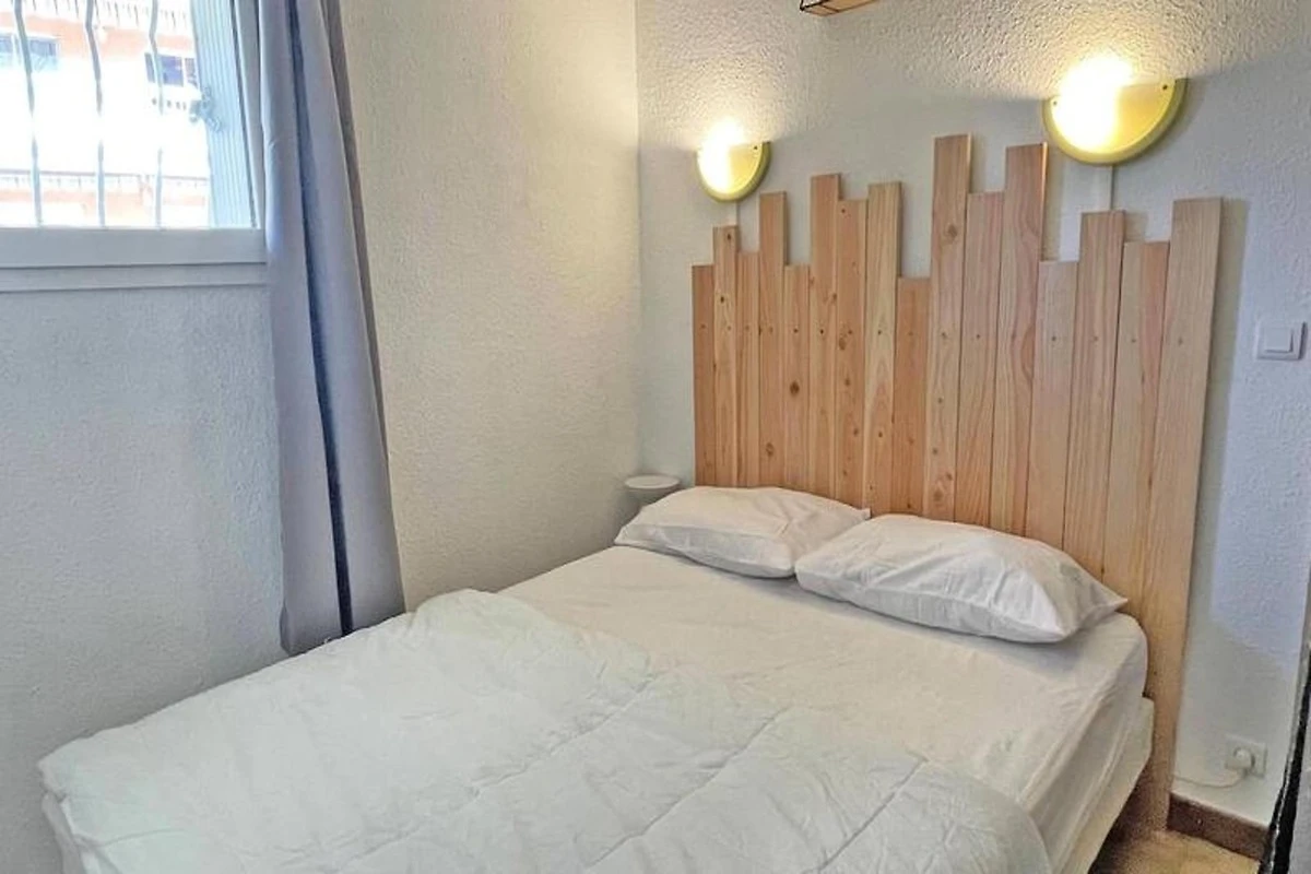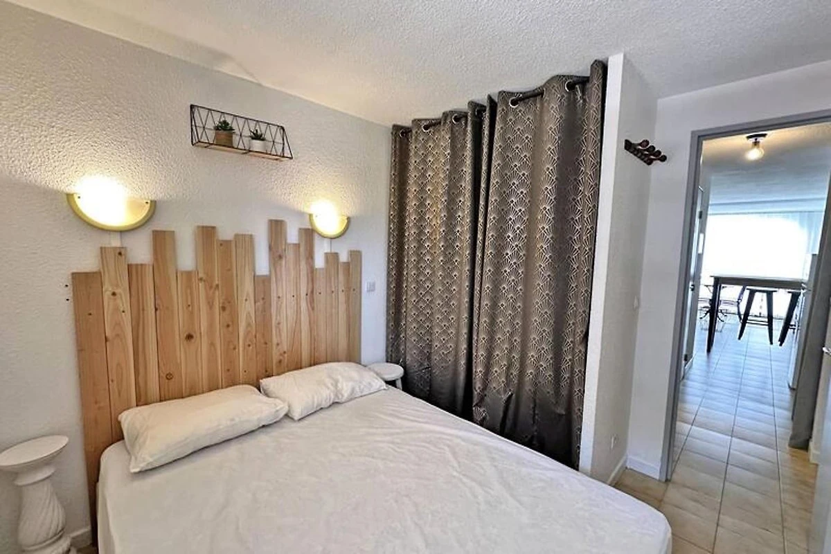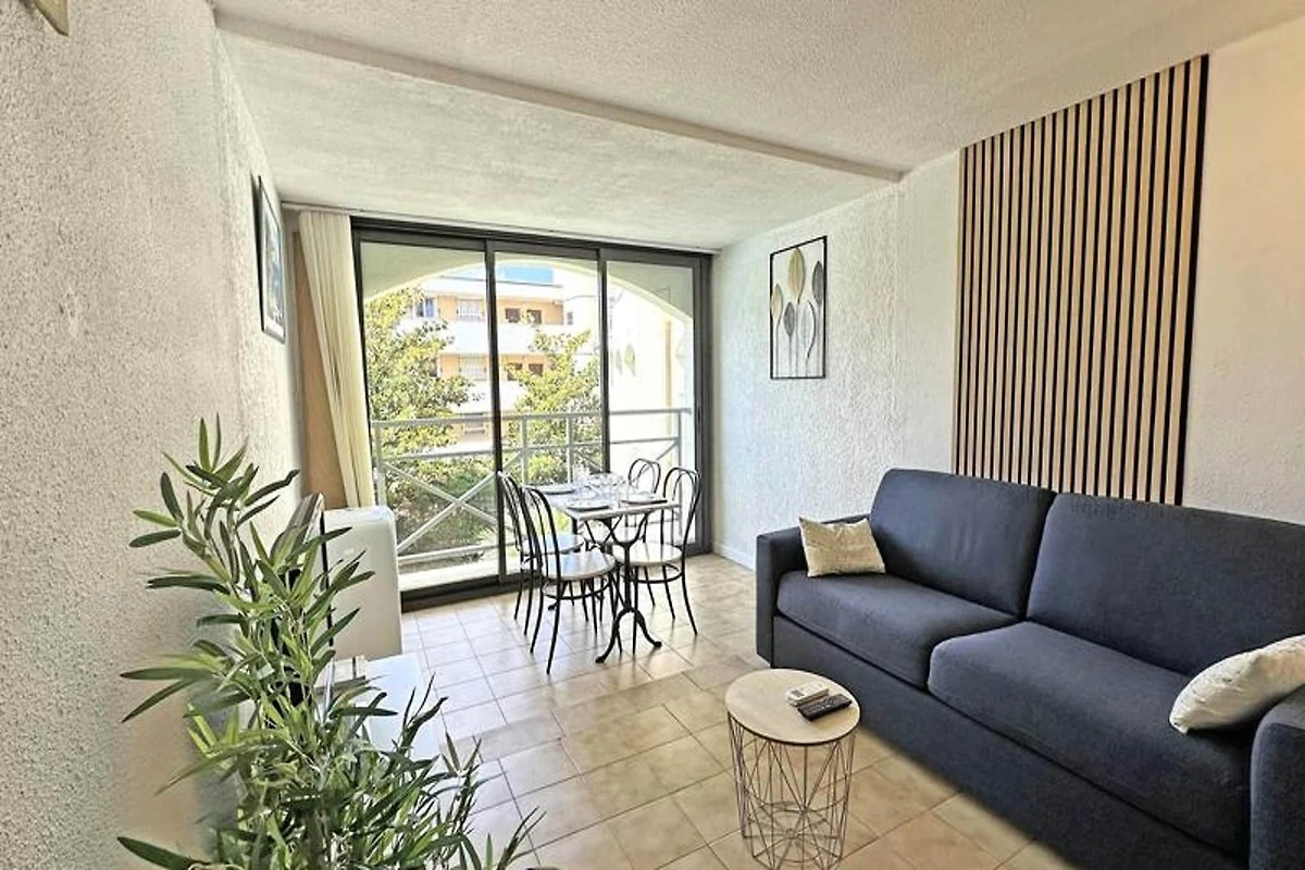Dieses 30 m² große Apartment befindet sich im 2. Stock einer Residenz in der Innenstadt von Sainte-Maxime und bietet Platz für bis zu 4 Personen. Das Wohnzimmer verfügt über ein 140 cm großes Schlafsofa, einen Flachbildfernseher und eine offene Küche mit einem hohen Tisch und Hockern. Die Küche ist komplett ausgestattet mit Kühlschrank (Gefrierfach), Mikrowelle, 2-Flammen-Cerankochfeld, Dunstabzugshaube, Senséo-Kaffeemaschine und Waschmaschine. Das Schlafzimmer bietet ein 140 cm breites Doppelbett und Stauraum. Die Wohnung verfügt außerdem über ein Badezimmer mit Duschkabine und ein separates WC. Die Loggia eignet sich mit Tisch und Stühlen perfekt zum Essen.