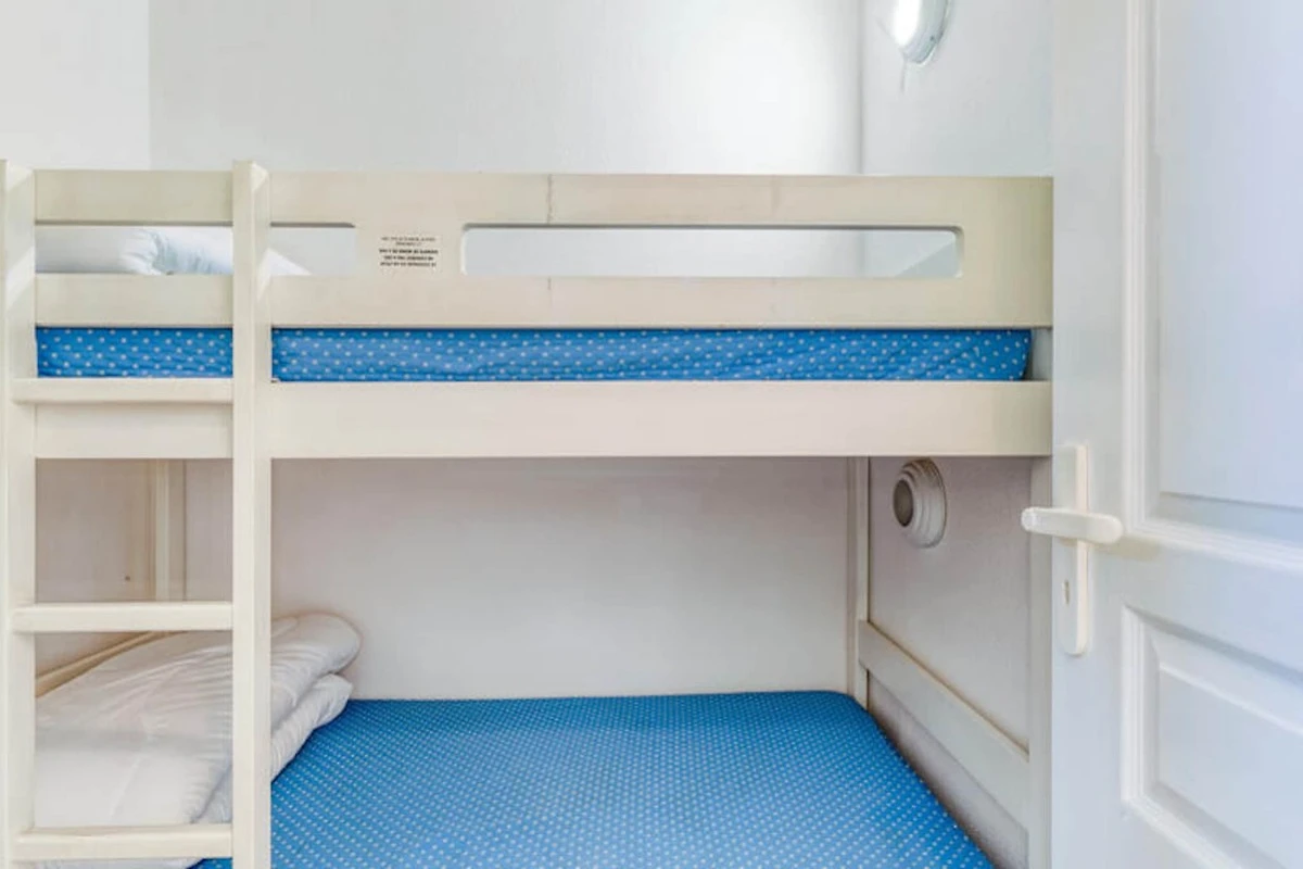 Dieses charmante Ferienhaus bietet bequem Platz für bis zu sechs Gäste. Es verfügt über ein Schlafzimmer mit einem Doppelbett, einen Kabinenbereich mit Etagenbetten und ein Wohnzimmer mit einem Schlafsofa und einem Ausziehbett. Es gibt zwei Badezimmer, eines mit Badewanne und das andere mit Dusche. Die Unterkunft ist haustierfreundlich und erlaubt gegen eine zusätzliche Gebühr die Mitnahme von Haustieren. Genießen Sie die Ruhe der nach Süden ausgerichteten Terrasse und des Gartens mit herrlichem Meerblick, der sich ideal zum Entspannen nach einem erlebnisreichen Tag eignet.