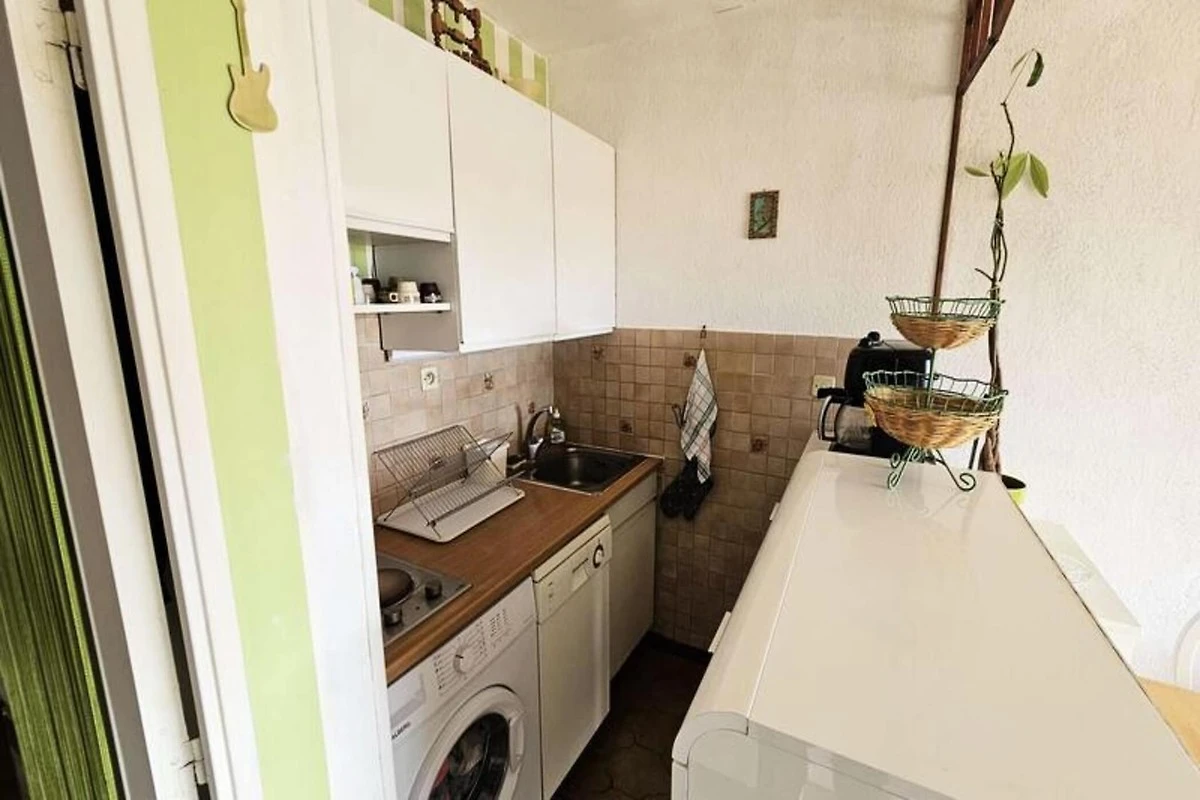 Das 40 m² große Apartment verfügt über einen kombinierten Küchen- und Wohnbereich, ein separates Schlafzimmer mit einem 140 cm breiten Bett und ein einzelnes Schlafsofa im Wohnbereich. Die Küche ist mit einem Herd, einer Mikrowelle, einem Geschirrspüler, einer Waschmaschine, einem Kühl-/Gefrierschrank, einer Kaffeemaschine, einem Wasserkocher und einem Toaster ausgestattet. Das Badezimmer verfügt über ein WC. Für zusätzlichen Komfort bietet das Apartment außerdem Gartenmöbel, einen Liegestuhl, eine Markise, Reinigungsmittel, ein Bügelbrett und Bügeleisen, einen Wäscheständer, einen Staubsauger und einen Besen. Bettwäsche, Handtücher und Endreinigung sind als optionale Extras erhältlich.