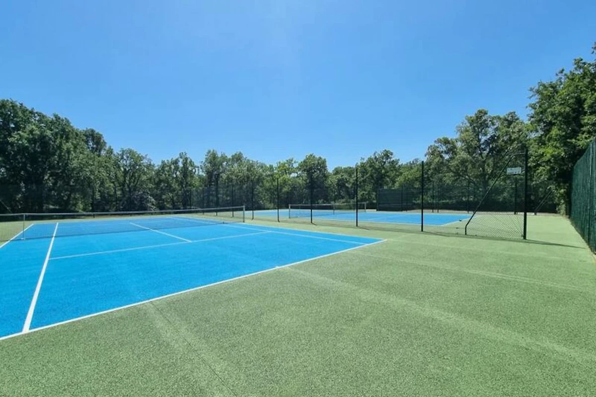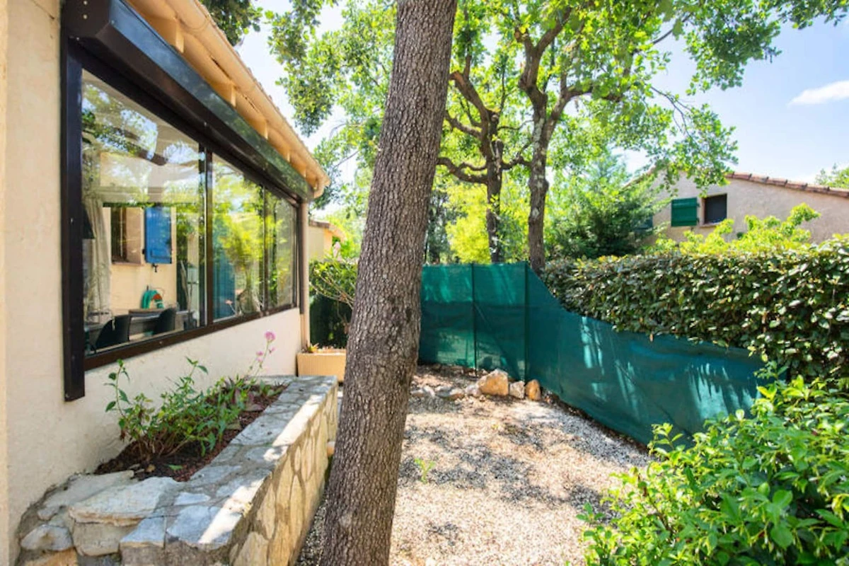 Das Ferienhaus verf�gt �ber eine voll ausgestattete K�che mit allem Nצtigen, darunter eine Kaffeemaschine, eine Mikrowelle, ein Backofen und ein Herd. Den Gהsten steht ein privater Au�enbereich mit Esstisch, Plancha und Sonnenliegen zur Verf�gung. Zu den weiteren Annehmlichkeiten gehצren ein Badezimmer mit Dusche, ein separates WC und Zugang zum gro�en Gemeinschaftspool, zum Kinderspielplatz und zu den Tennisplהtzen innerhalb des Anwesens.
