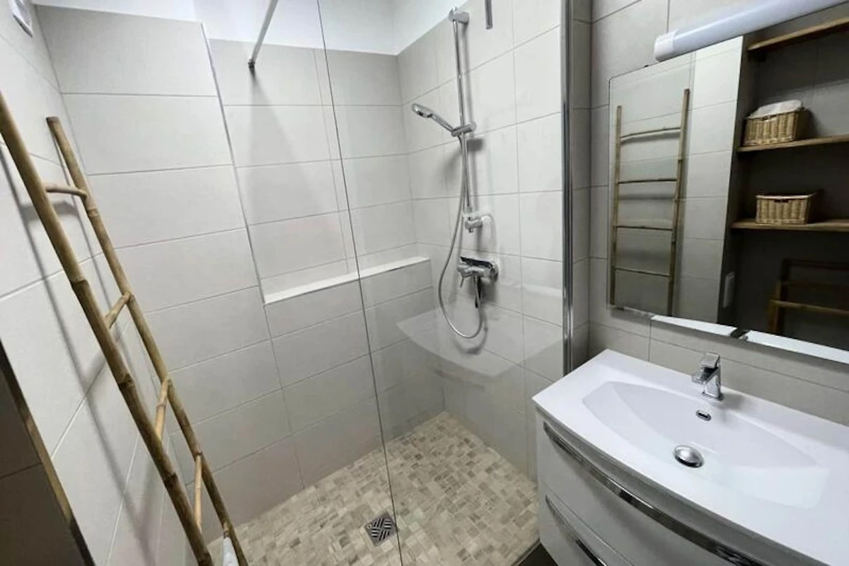 Dieses Apartment liegt nur 300 Meter vom Strand entfernt und bietet den idealen Ausgangspunkt, um die Schönheit der Küste zu genießen. Innerhalb eines kurzen 5-minütigen Spaziergangs finden Sie zahlreiche Geschäfte, Cafés und Restaurants, in denen Sie lokale Spezialitäten und frische Meeresfrüchte genießen können. Die lebhafte Promenade und der ruhige Strand machen diese Gegend perfekt für einen erholsamen Urlaub.