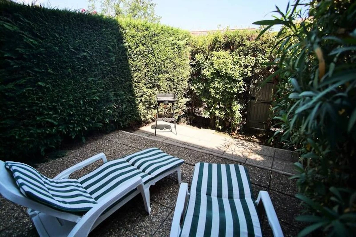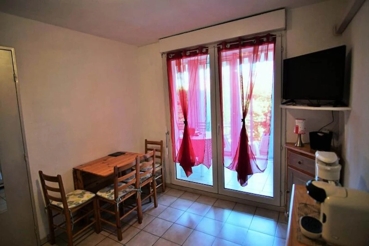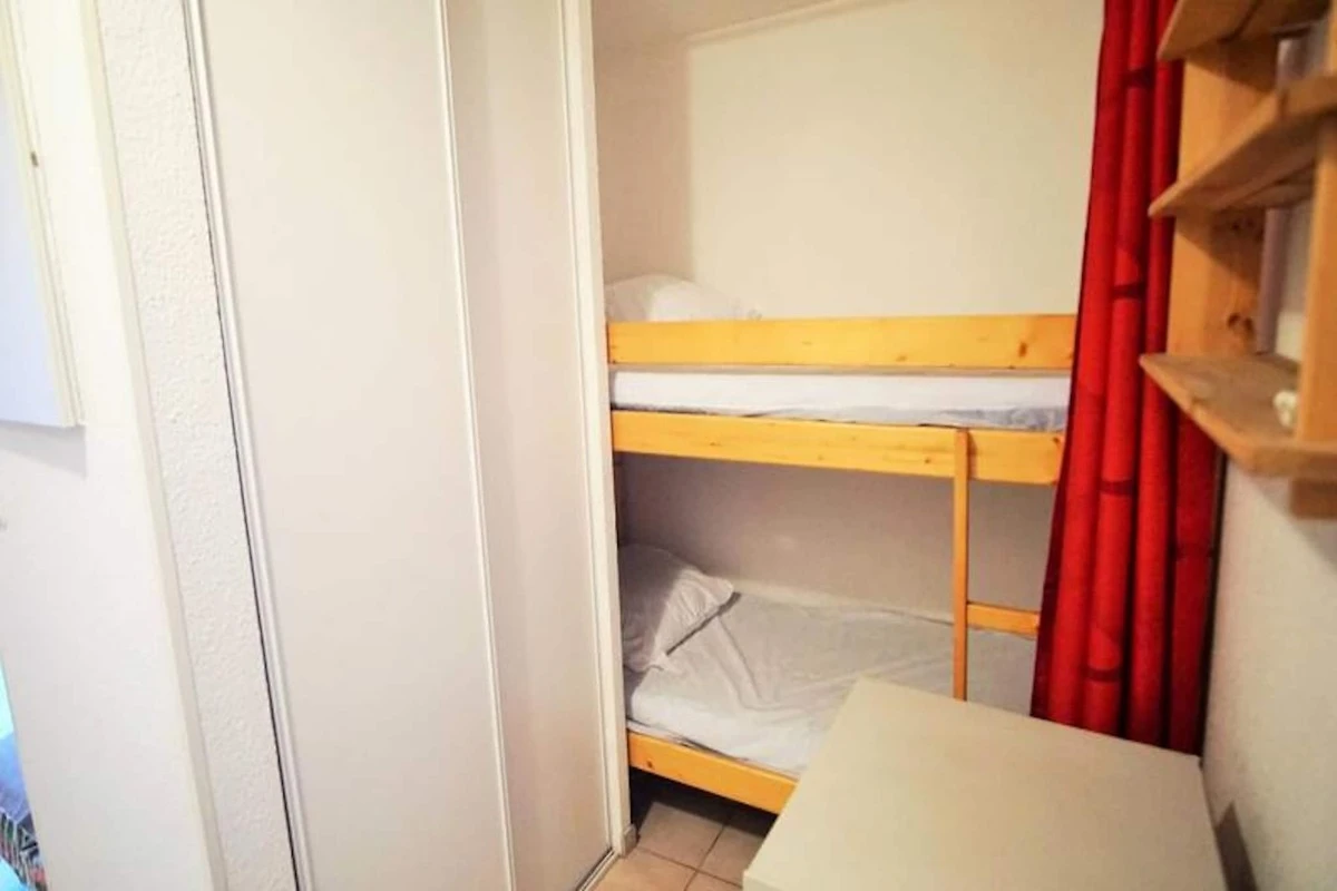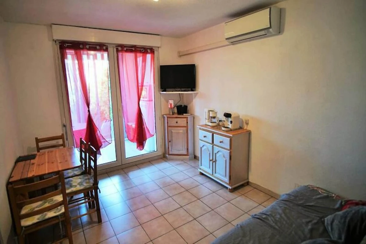 Dieses charmante T2-Apartment befindet sich in einer Residenz mit Zugang zu einem Gartenpool und ist ideal für Familien oder kleine Gruppen. Es verfügt über ein Schlafzimmer mit einem Doppelbett (140 cm) und einen separaten Schlafbereich mit 2 Etagenbetten (90 cm), konzipiert für Kinder ab 6 Jahren. In der Wohnung ist das Rauchen verboten und Haustiere sind nicht gestattet, sodass ein ruhiger Aufenthalt gewährleistet ist. Den Gästen stehen private Parkplätze zur Verfügung.