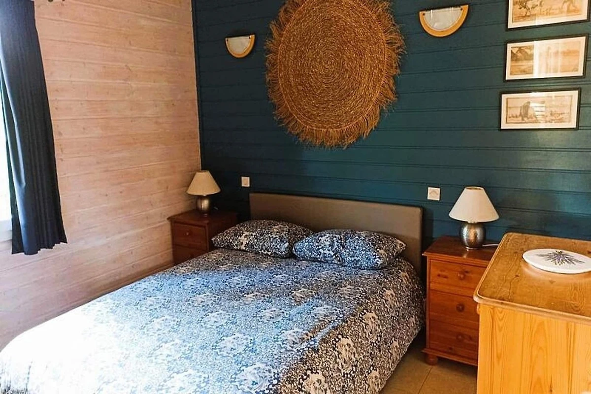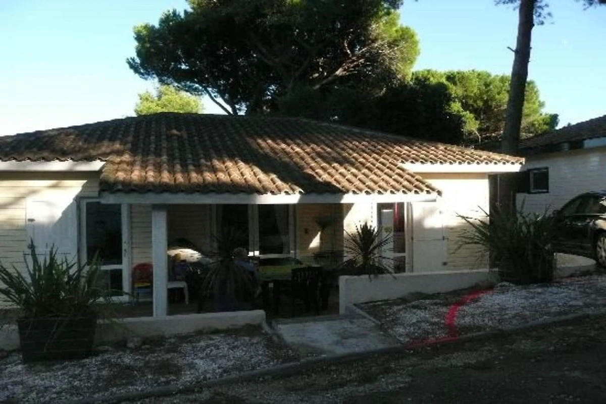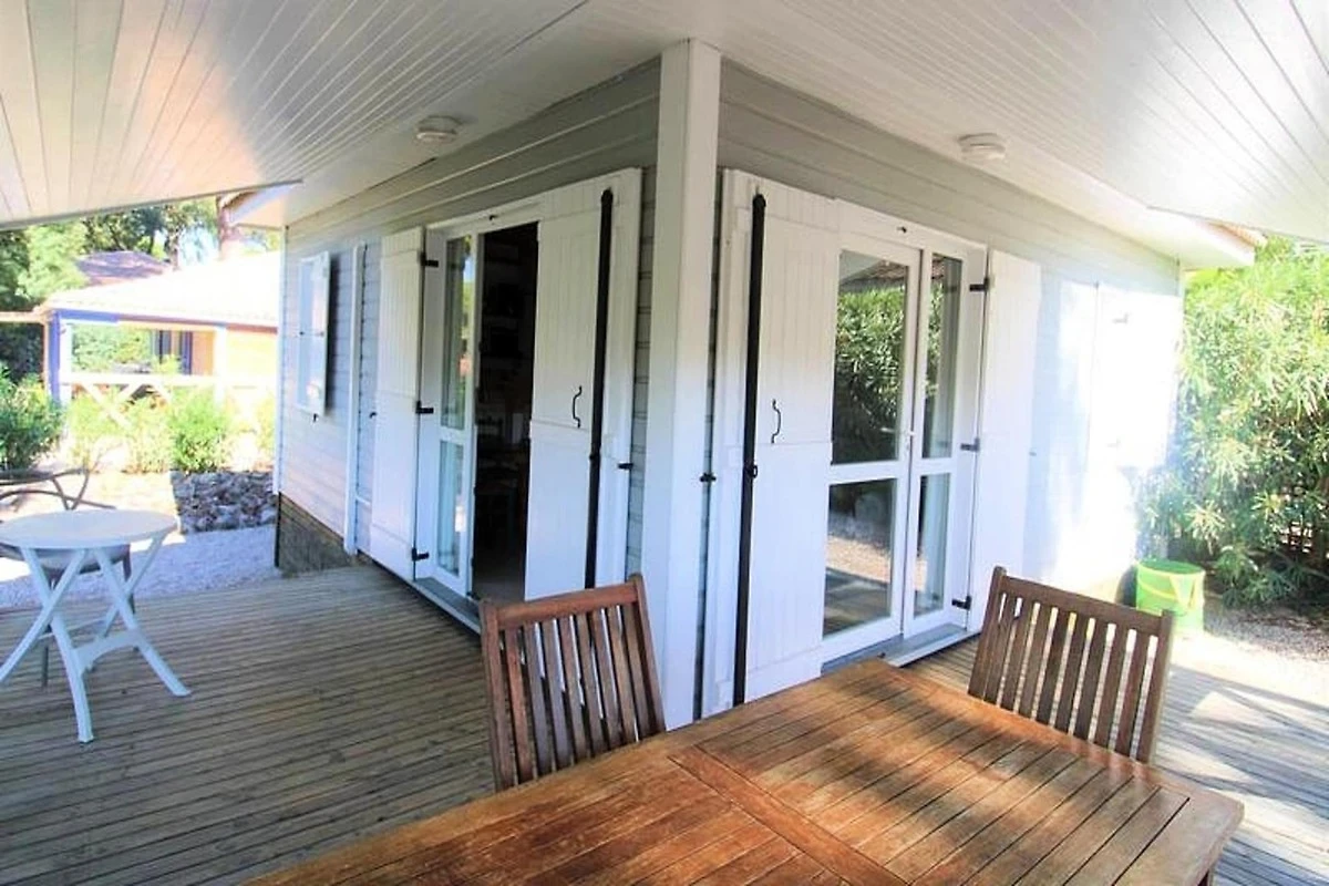 Dieses charmante, 38 m² große Holzchalet liegt in einem sicheren, 15 Hektar großen, bewaldeten Park und bietet bequem Platz für bis zu sechs Gäste. Es verfügt über zwei Schlafzimmer (eines mit Doppelbett und eines mit zwei Einzelbetten) und ein ausziehbares Schlafsofa im Wohnzimmer. Das Chalet ist klimatisiert und haustierfreundlich (gegen Aufpreis). Parkplätze stehen vor dem Chalet zur Verfügung.