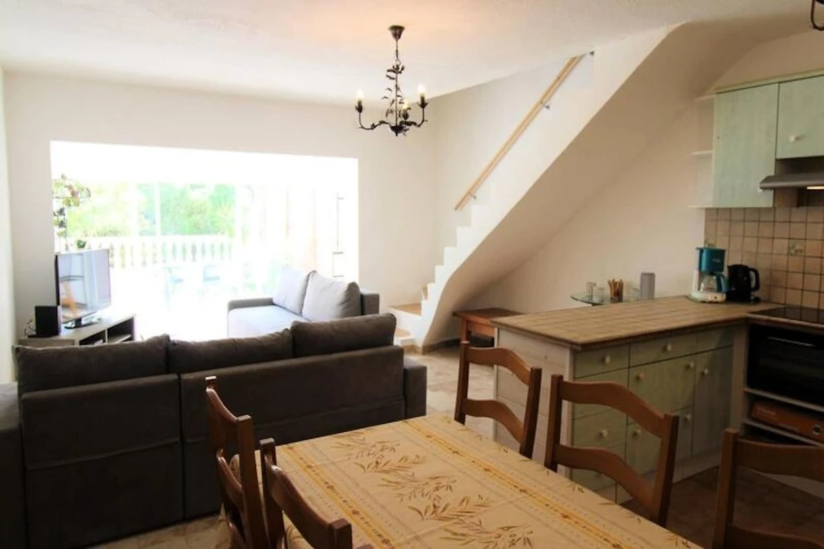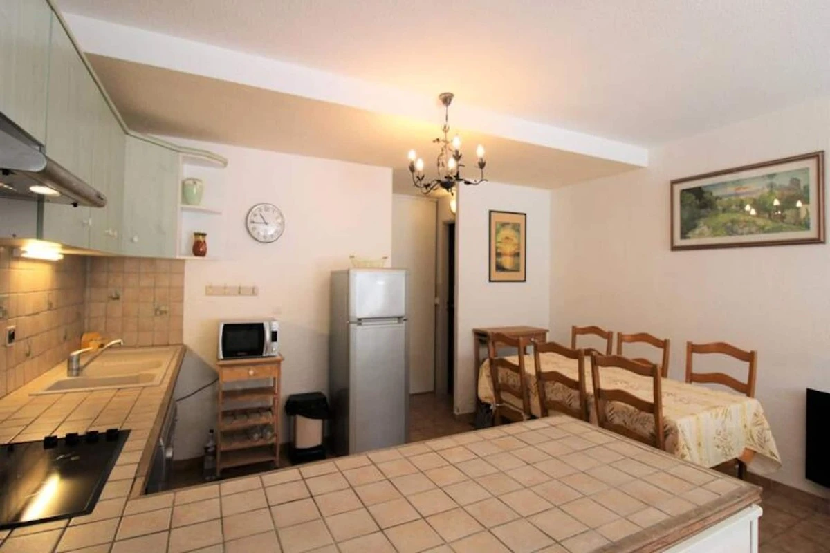 Dieses charmante T3-Mazet im Herzen der Domaine de Font-Mourier bietet einen komfortablen Aufenthalt für 4-6 Personen. Es verfügt über ein geräumiges Wohnzimmer mit einem Schlafsofa (für 2 Personen), eine voll ausgestattete offene Küche und ein Badezimmer mit ebenerdiger Dusche. Im ersten Stock befinden sich zwei gemütliche Schlafzimmer mit jeweils einem Doppelbett. Für Ihren Komfort bietet das Mazet moderne Annehmlichkeiten wie einen Flachbildfernseher, einen Geschirrspüler, eine Waschmaschine, einen Kühlschrank mit Gefrierfach, einen Backofen, eine Mikrowelle und WLAN. Ein privater Parkplatz ist ebenfalls vorhanden.