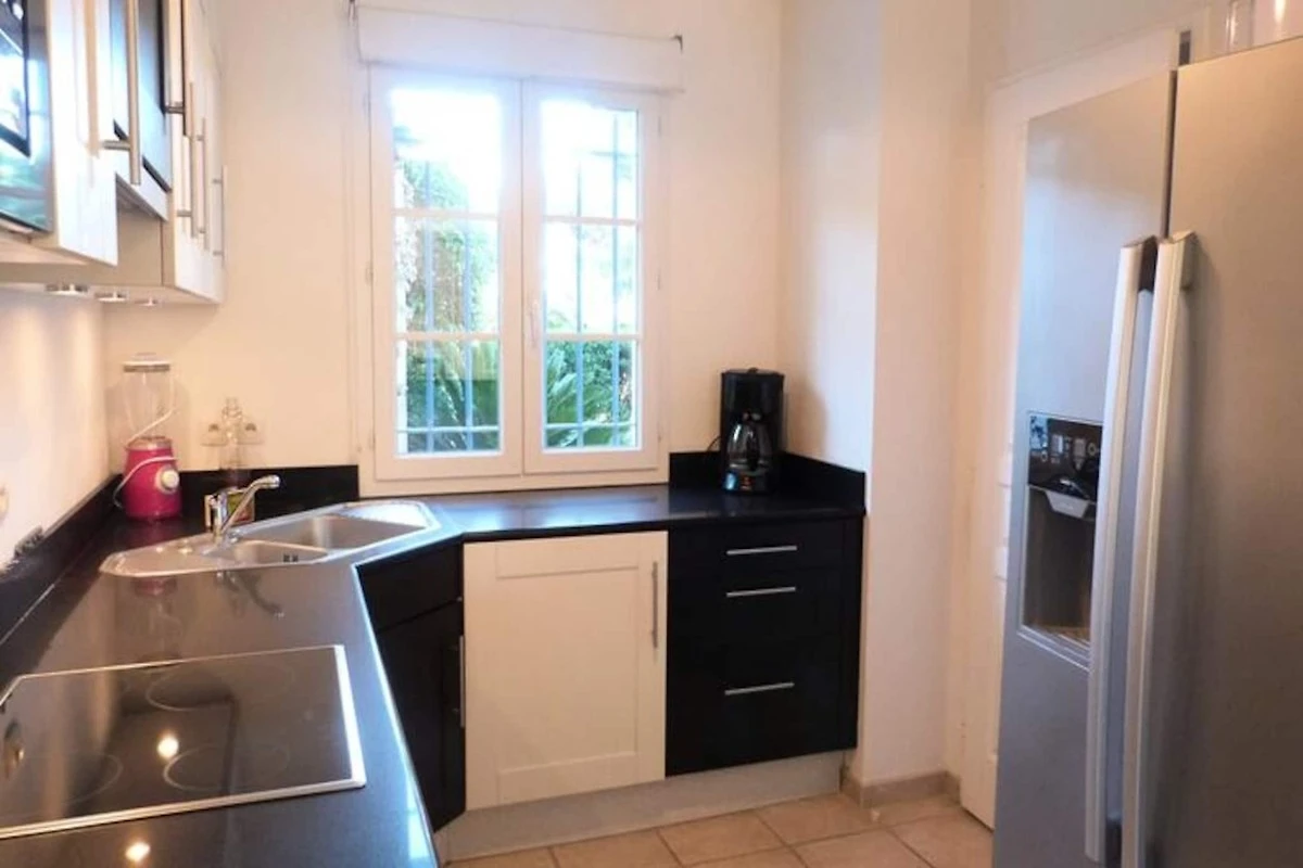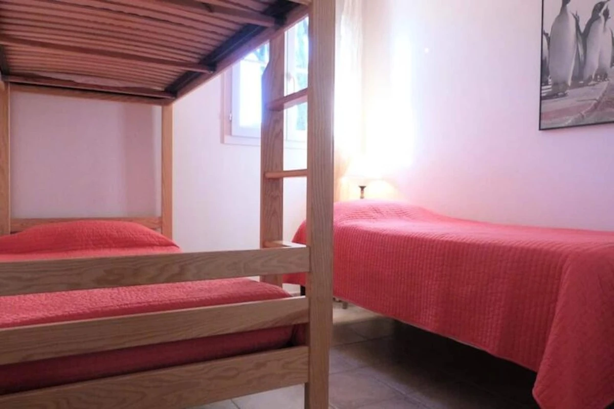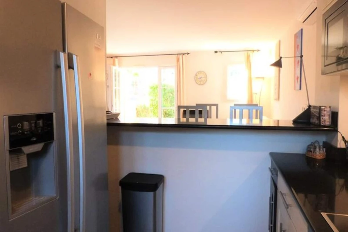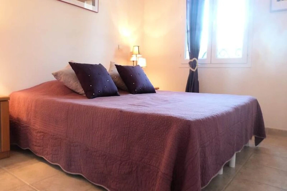 Diese angenehme 80 m² gro�e Doppelhaushהlfte ist die perfekte Immobilie f�r einen angenehmen Urlaub. Es bietet Platz f�r maximal 7 Personen. Nutzen Sie den Garten zum Fr�hst�cken mit schnellem Zugang zum Swimmingpool. Das Haus besteht aus einer Eingangshalle, einem Wohn-/Essbereich mit TV und Zugang zur Terrasse und zum Garten, 2 Sofas, einer voll ausgestatteten offenen K�che und einem separaten WC. Im Obergeschoss: zwei Schlafzimmer mit jeweils 2 Einzelbetten (Mצglichkeit, diese zu einem Doppelbett zusammenzustellen), ein Schlafzimmer mit 2 Etagenbetten und 1 Einzelbett, Badezimmer mit WC, Duschbad. F�r Ihren Komfort: Geschirrsp�ler, Waschmaschine, amerikanischer K�hlschrank, Backofen, Mikrowelle, Kochplatten, Klimaanlage, Gartenmצbel, elektrische Markise, WIFI. Privater Parkplatz.