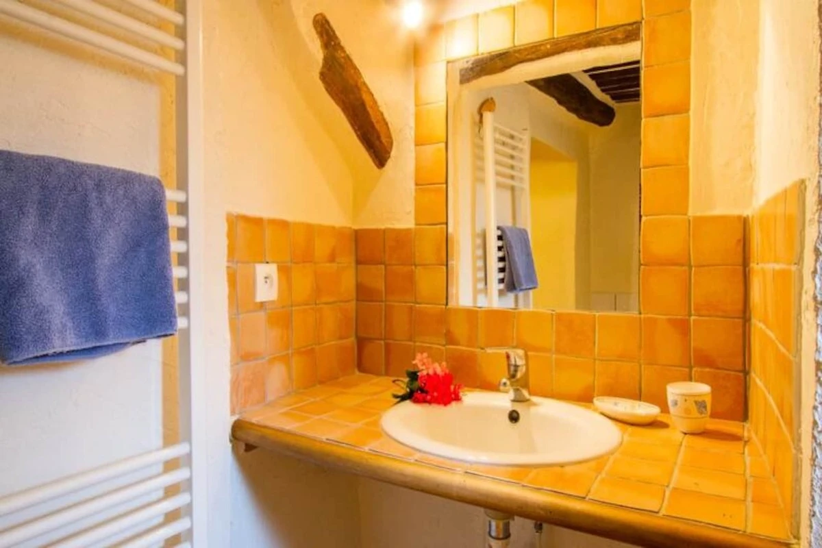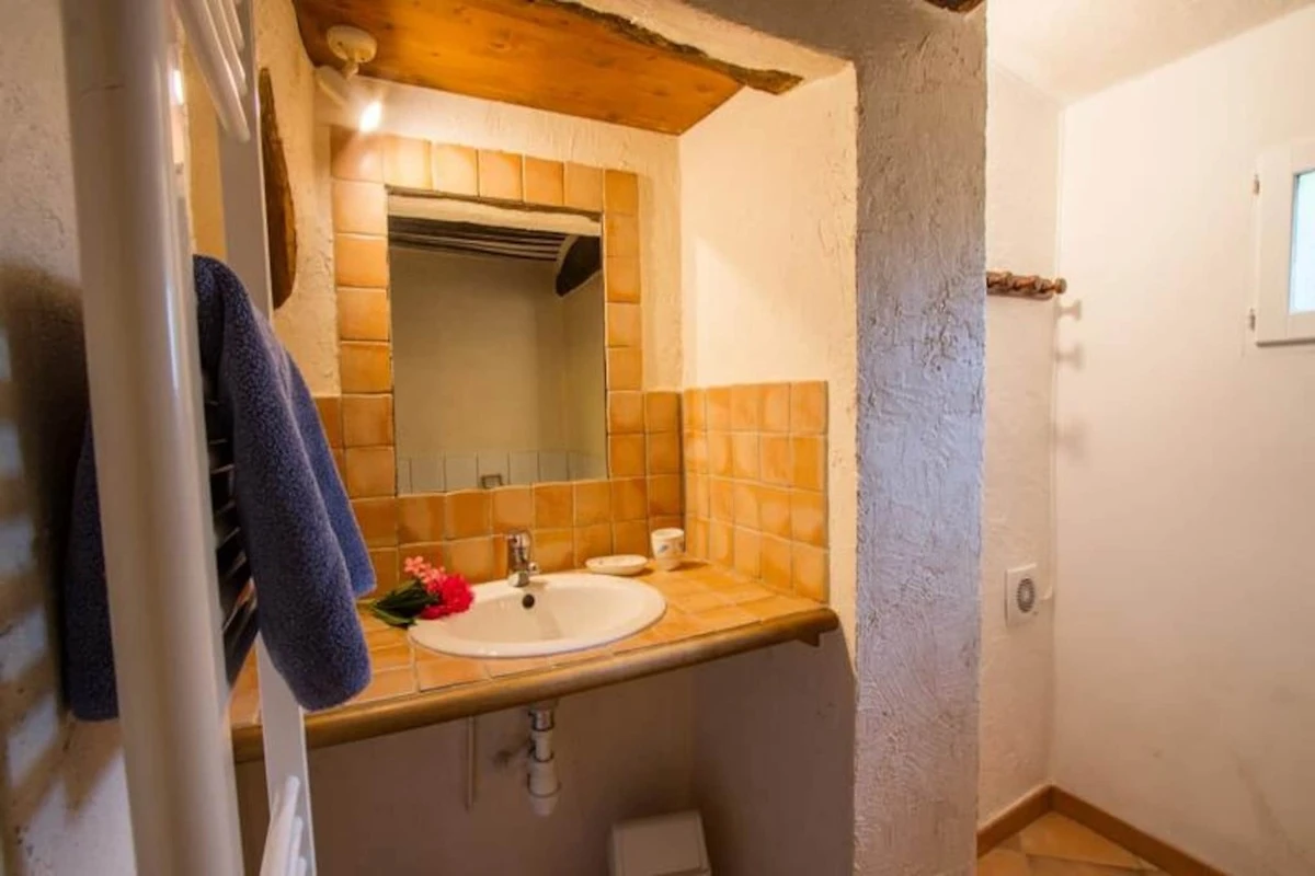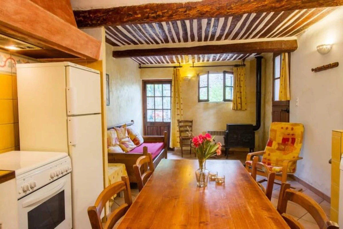 Eingebettet im Herzen der Provence bietet dieses charmante Bauernhaus einen ruhigen und idyllischen Rückzugsort, perfekt für Naturliebhaber und Ruhesuchende. Das Anwesen bietet Platz für 4 bis 6 Personen und genießt das wunderschöne goldene Licht der untergehenden Sonne. Im Erdgeschoss verfügt das geräumige Wohnzimmer über einen gemütlichen Bereich mit einem Holzofen und einer voll ausgestatteten Küche, ideal für die Zubereitung traditioneller provenzalischer Gerichte wie „Tian“ oder „Aïoli“. Die schattige Terrasse, geschützt von einem wunderschönen Maulbeerbaum, lädt zum Entspannen und Essen im Freien ein. Ein Badezimmer mit Dusche und eine separate Toilette vervollständigen diese Ebene.