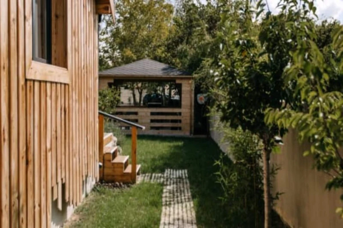 À Bij aankomst wordt u begroet door een royale parkeerplaats, genoeg om twee of zelfs drie auto's te parkeren, waardoor het een vriendelijke bestemming is voor familiebijeenkomsten en vrienden. Je ontdekt meteen een schaduwrijke plek. Ideaal om buiten te eten, met een volledig uitgeruste zomerkeuken en een barbecue, waar u buiten heerlijke maaltijden kunt bereiden en ervan kunt genieten.